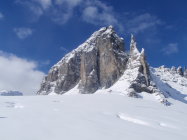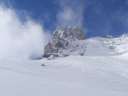 Bis zur Schlossberglücke noch starker Schneefall und bis zu 30 cm Neuschnee. Auf dem Gletscher riss die Wolkendecke auf und das Wetter zeigte sich von der schönsten Seite. Die Kletterstellen waren natürlich noch mit viel Schnee bedeckt und somit war nach dem ersten Fixseil Ende.