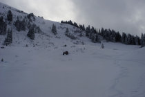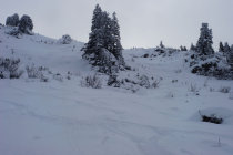 Schnee: Riedli gut 25cm weiter oben bis 50cm. Rücken nur wenig abgeblasen.