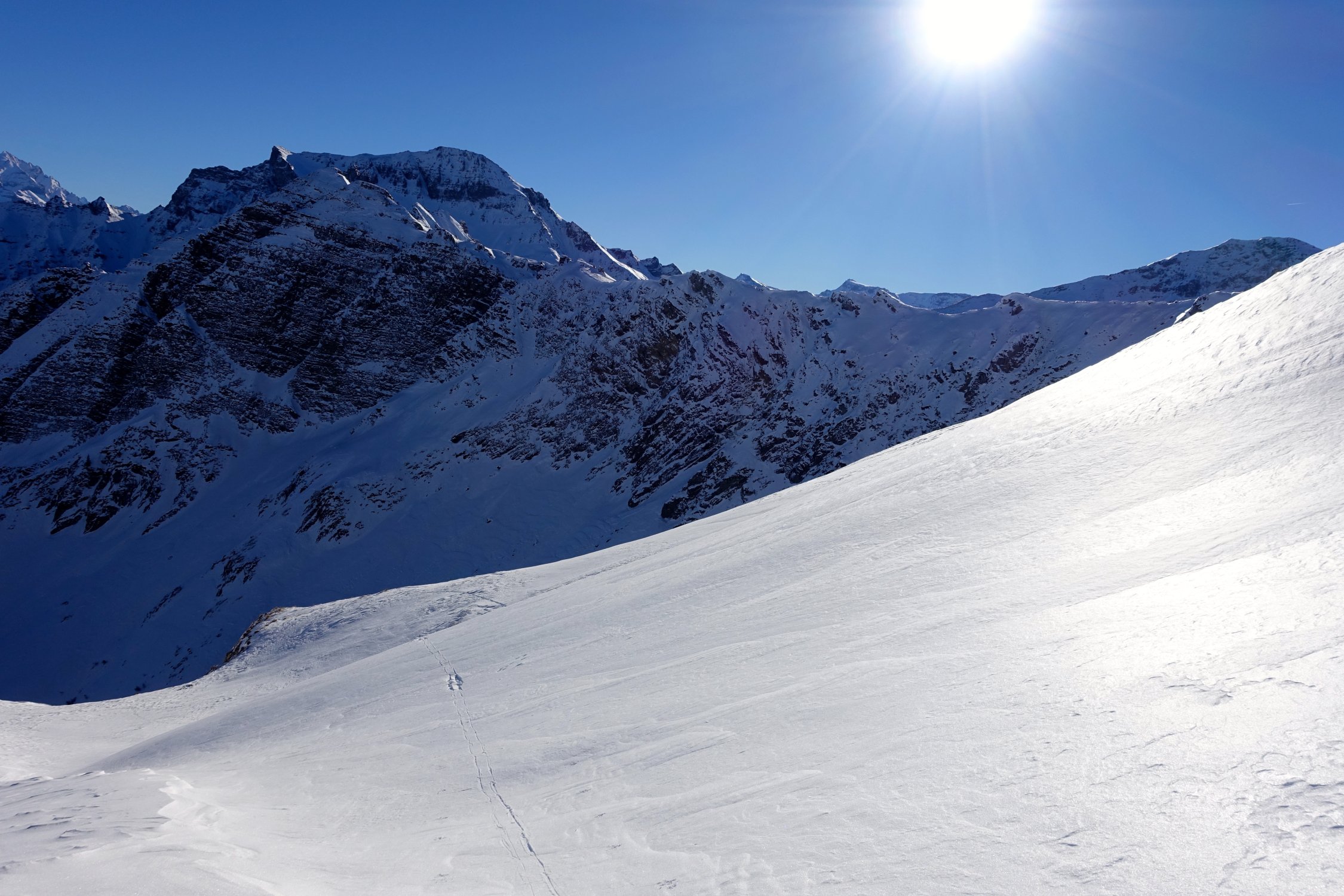 Heute erstaunlich gute Verhältnisse mit viel Schnee. Sehr einsame Route in toller Umgebung