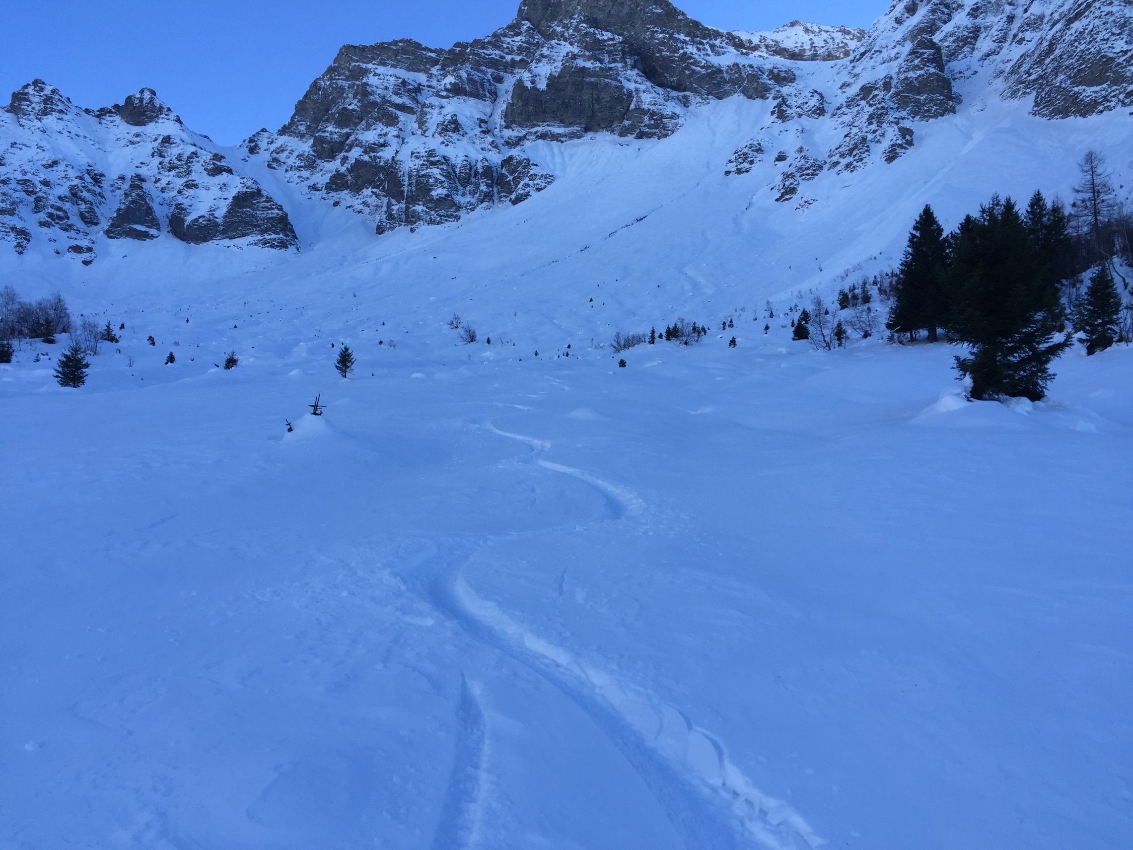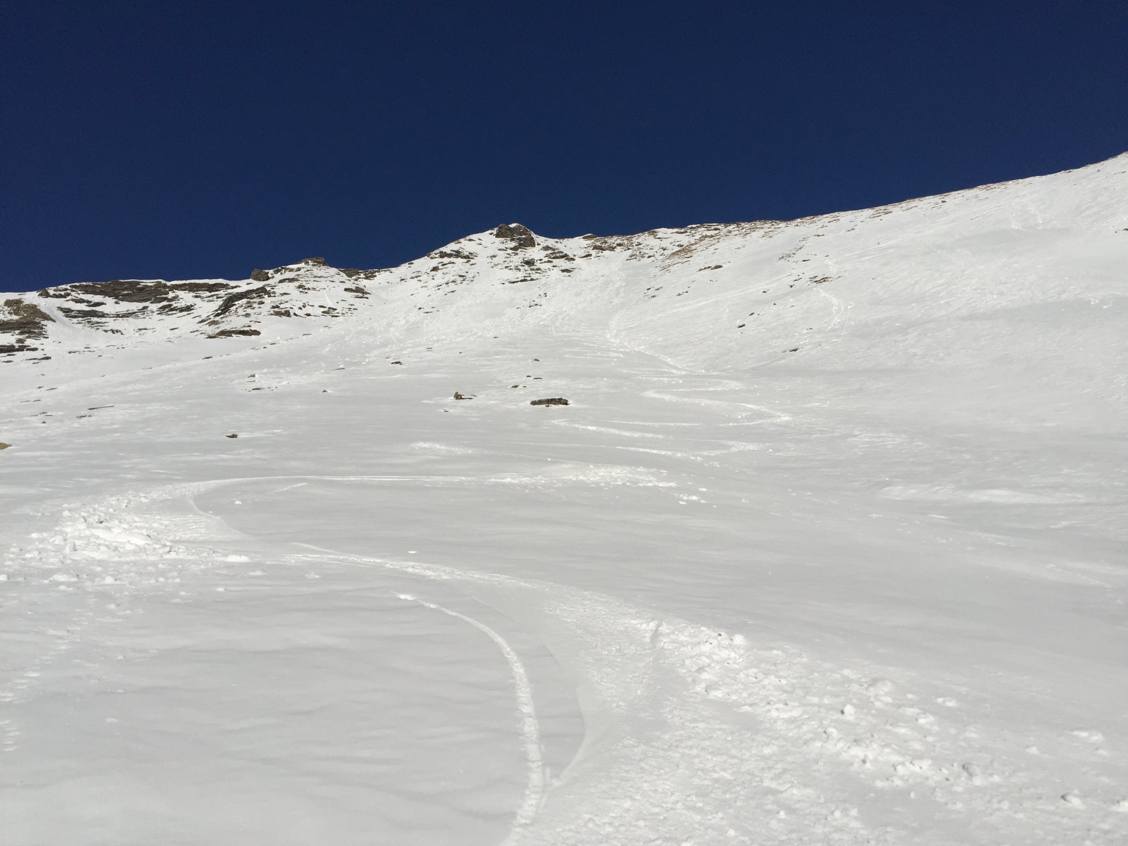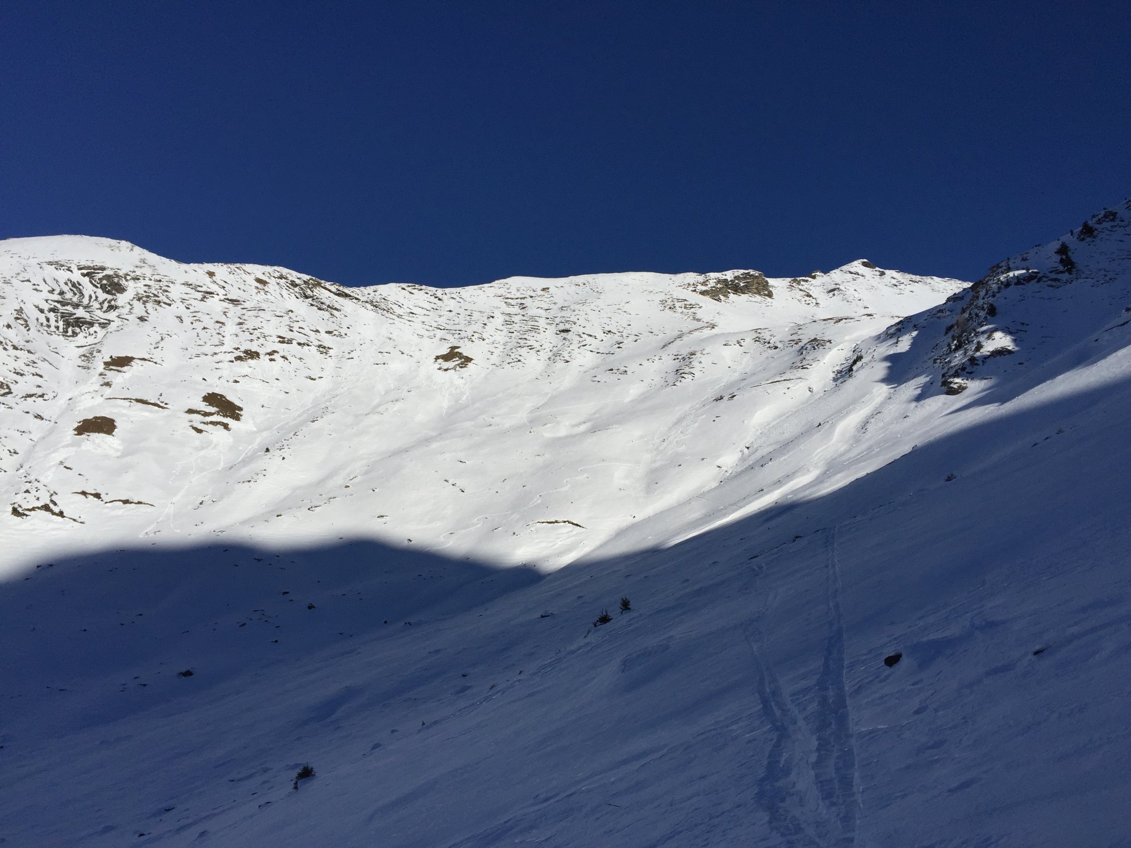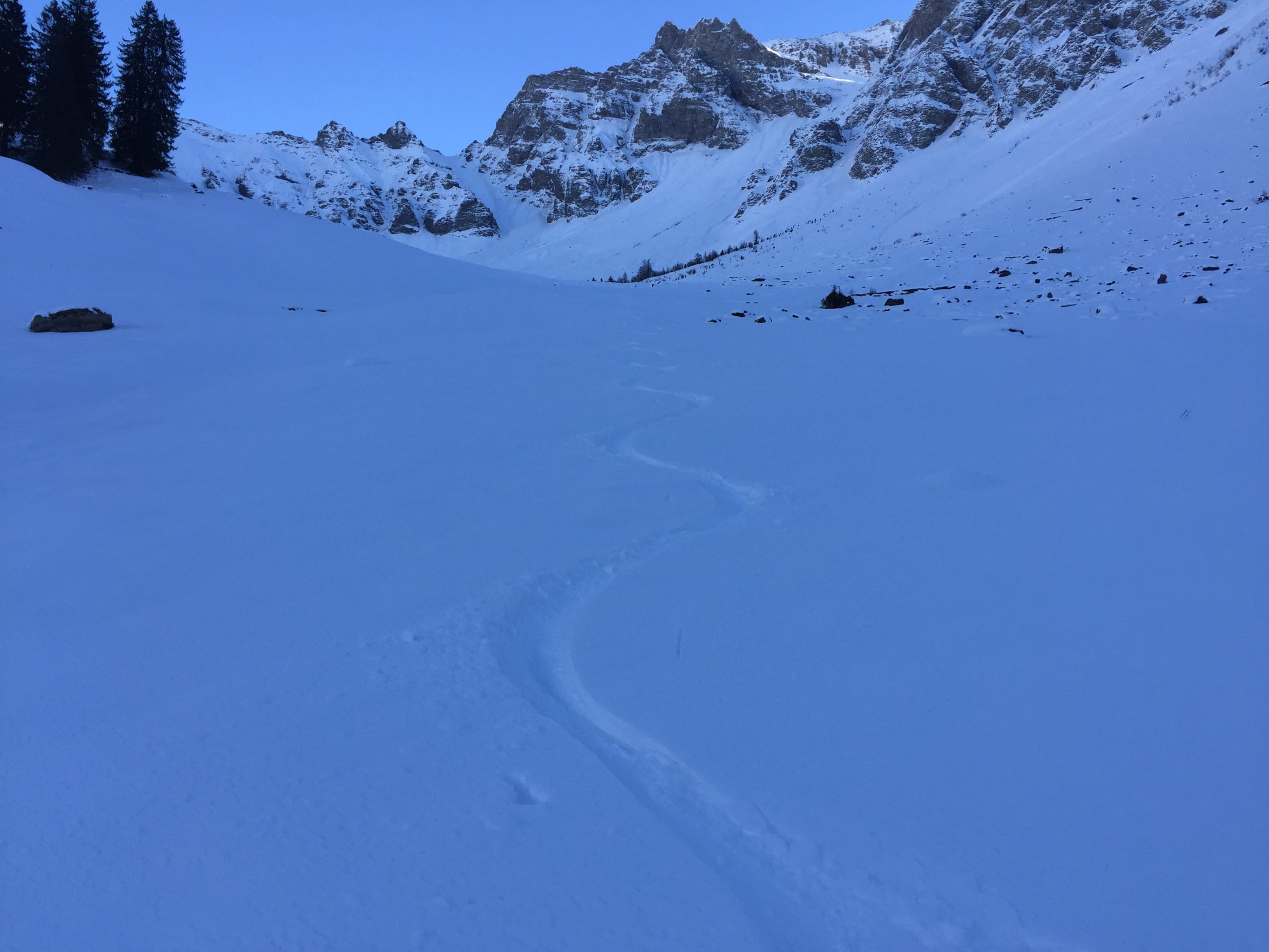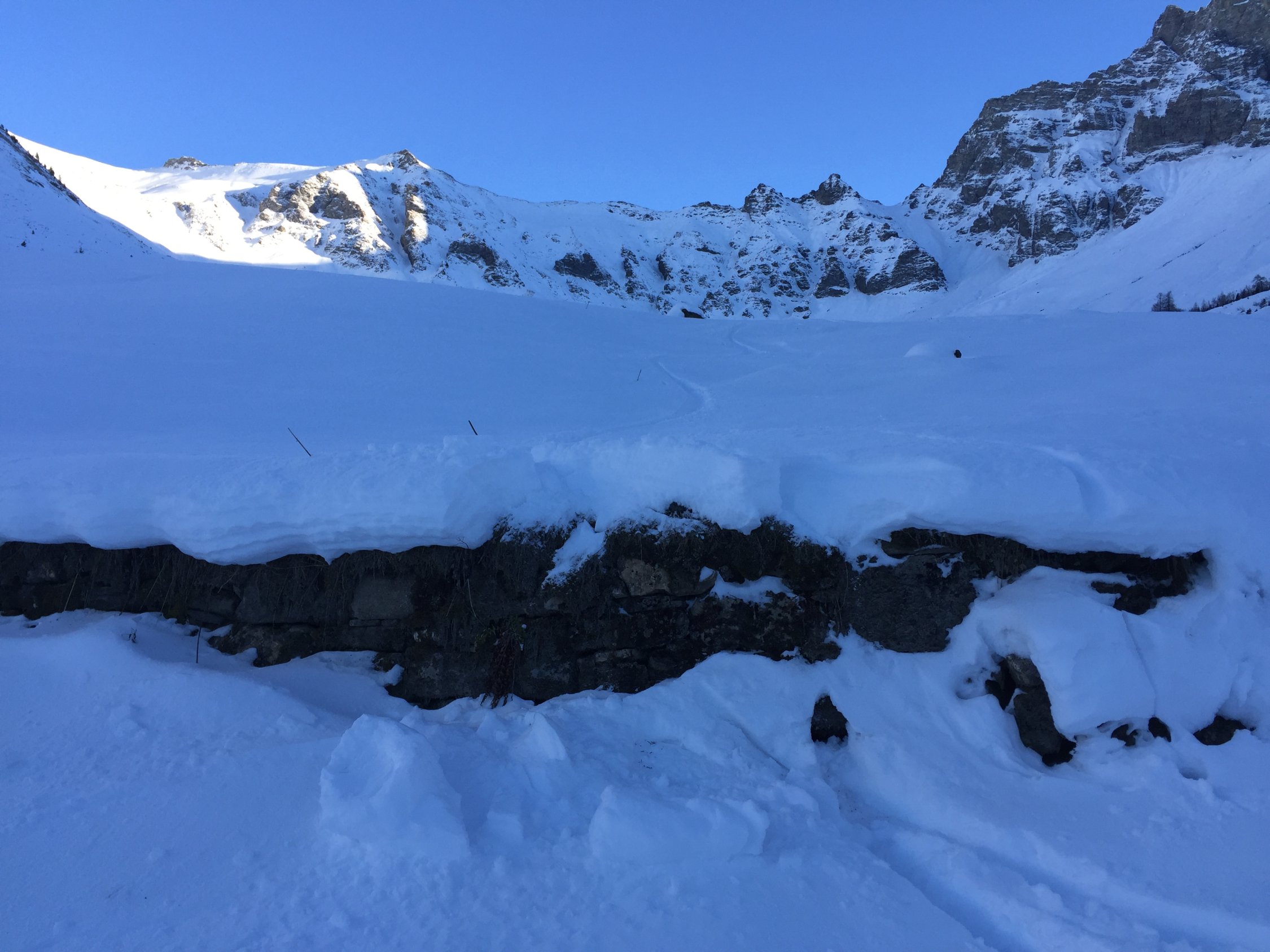 Im Chumli gibt es Rutsche von der Wärme, auch im Gipfelhang. Aber es liegt dort nicht soo viel Schnee.