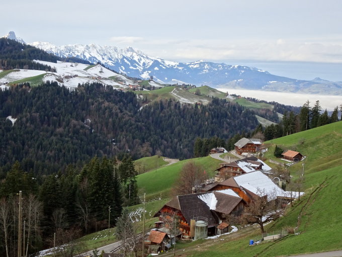Die ewige Frage bei solchen Touren: Schneeschuhe mitschleppen und sie nicht gebrauchen? Ohne Schneeschuhe starten mit dem Risiko dies zu bereuen? Wir gingen ohne Schneeschuhen und bis zum Chnübeli waren wir froh. Nach dem Chnübeli hingegen waren wir nicht mehr so froh und so mussten wir uns durchbeissen, was ohne grosse Klagelieder geschah. Wir sahen es als Konditionstest vor den Skitouren.