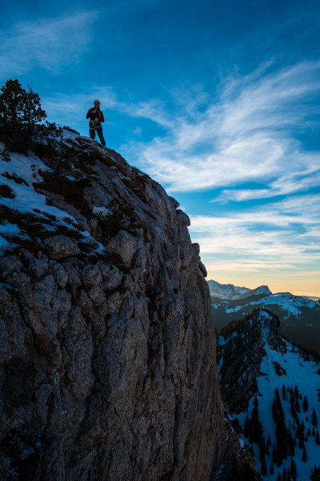 Bis zum Leisibach teilweise Lawinenkegel, eine neue Spur wurde durch uns angelegt. Danach guter Trittschnee bis zum Einstieg. Einstieg zum Grat rechtsseitig schneefrei. Im Oberen Teil wechselnde Schneehöhen, jedoch alle Haken frei. Brotmesser knochentrocken. Anschliessend ohne grösserer Schwierigkeiten bis zum Gipfel der Ruessiflue. Wir haben uns nach Sonnenuntergang zum Abstieg über die Nordflanke in einer Rinne entschieden, dort gut 50 cm Schnee, teils mit Deckel.