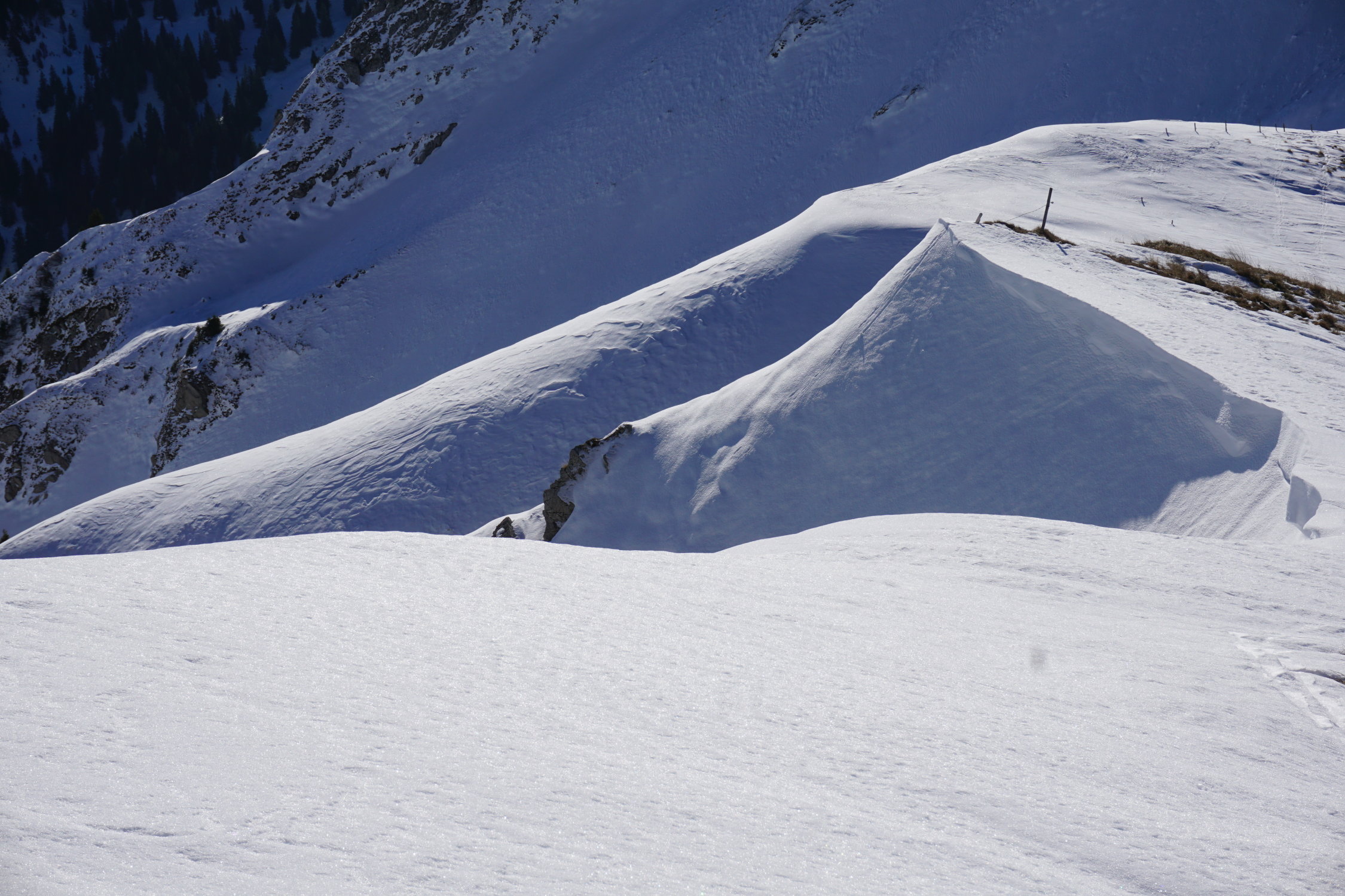 frühlinghaft, ideale Abfahrtsbedingungen für den Gipfelhang (SW Flanke) 12.30, im unteren Teil ab Unteralpigle bis Hengst ruppig mit gefrorenen Spuren, genügend Schnee, die Steine sind sichtbar, Aufstieg von Skidepot zum Gipfel gute Trittspur