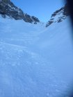 der ausstieg in den sattel ist noch schlecht eingeschneit die aufstiegsspur muss einige zusätzliche spitzkehren einbauen. und in der abfahrt bleibt nichts anderes übrig als die erst paar höhenmeter ganz vorsichtig ab zu fahren, da dort doch noch einige tückische steine lauern. weiter unten dann tolle verhältnisse.