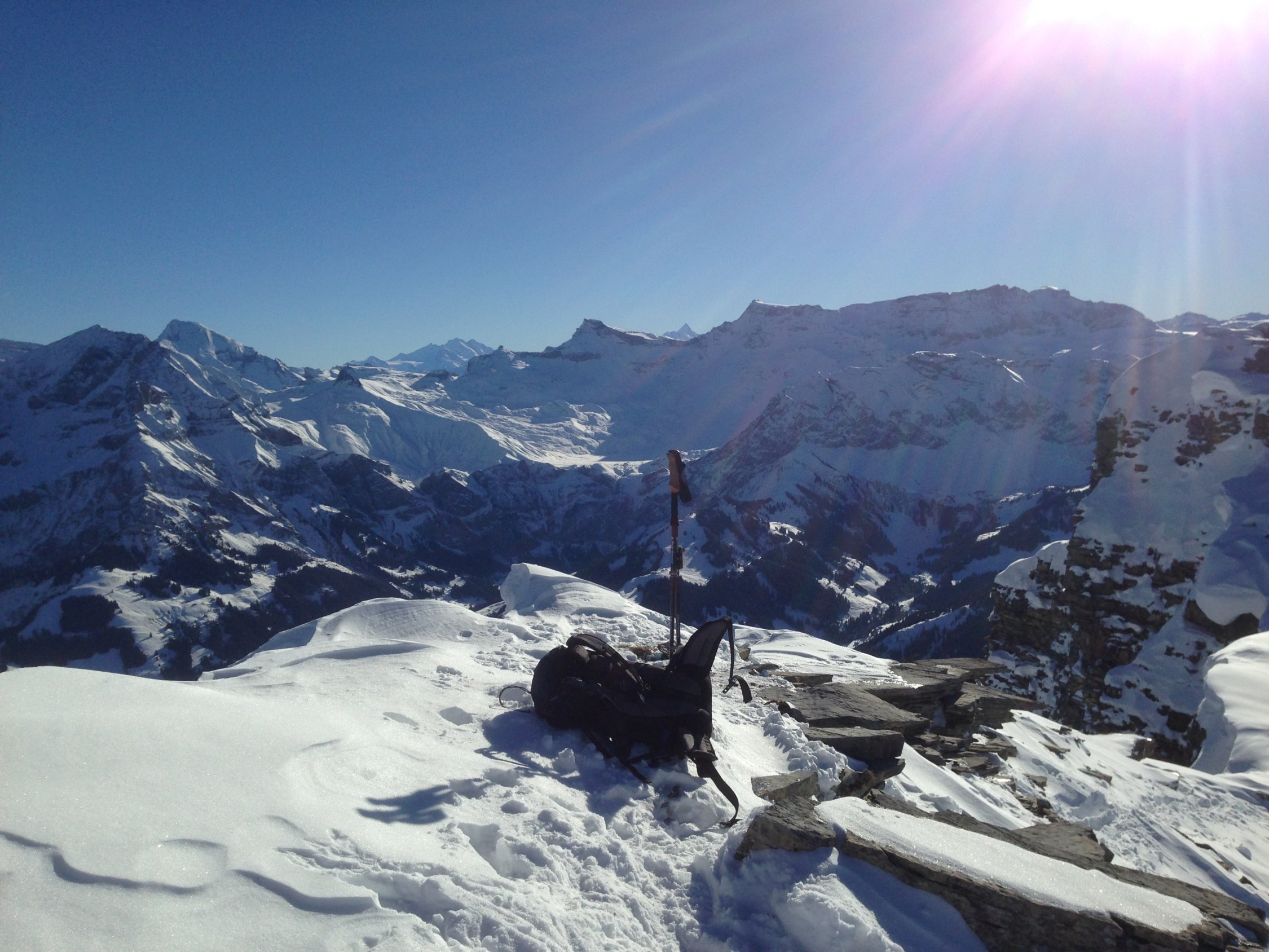 ab dem steilhang ca. bei 1800 zunehmend mit einer schönen schicht neuen pulverschnee. der hang selber weisst vom vergangenen samstag eine tolle aufstiegsspur auf, trotzdem hat mein vorgänger einiges an spurarbeit zu leisten um oben in den sattel zu kommen. und auch als zeiter war die spur zum teil schon wieder eingeblasen, obschon eigentlich bei dem prachtvollen wetter kein wind spürbar war.
