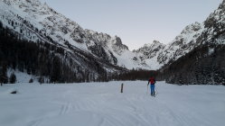 Endlich wieder einmal im Orny Gebiet unterwegs. Nach einem Bericht auf Camp to Camp wonach im Orny „bonnes conditions“ herrschen sollen, war der Entschluss rasch gefallen. Gegen 07:30 Uhr starteten wir auf dem Parkplatz beim Skilift von Champex und stiegen via die bereits präparierten Pisten Richtung Val d’Arpette auf. Bis zum Punkt 1733 waren die Bedingungen super und selbst durch das anschliessende Waldstück war die Schneedecke genügend dick, um nicht ständig Steinkontakt zu haben. Ab ca. 1900m änderte sich dies aber deutlich und Bedenken bezüglich der Abfahrt machten sich bei uns breit. Im Gebiet der Pierriers d’Arpette liegt noch zu wenig Schnee, als dass der steinige Untergrund genügend gedeckt wäre. An vielen Orten sind die Blöcke nur mit einer dünnen Schneeschicht gedeckt, entsprechend häufig die Kratzgeräusche…