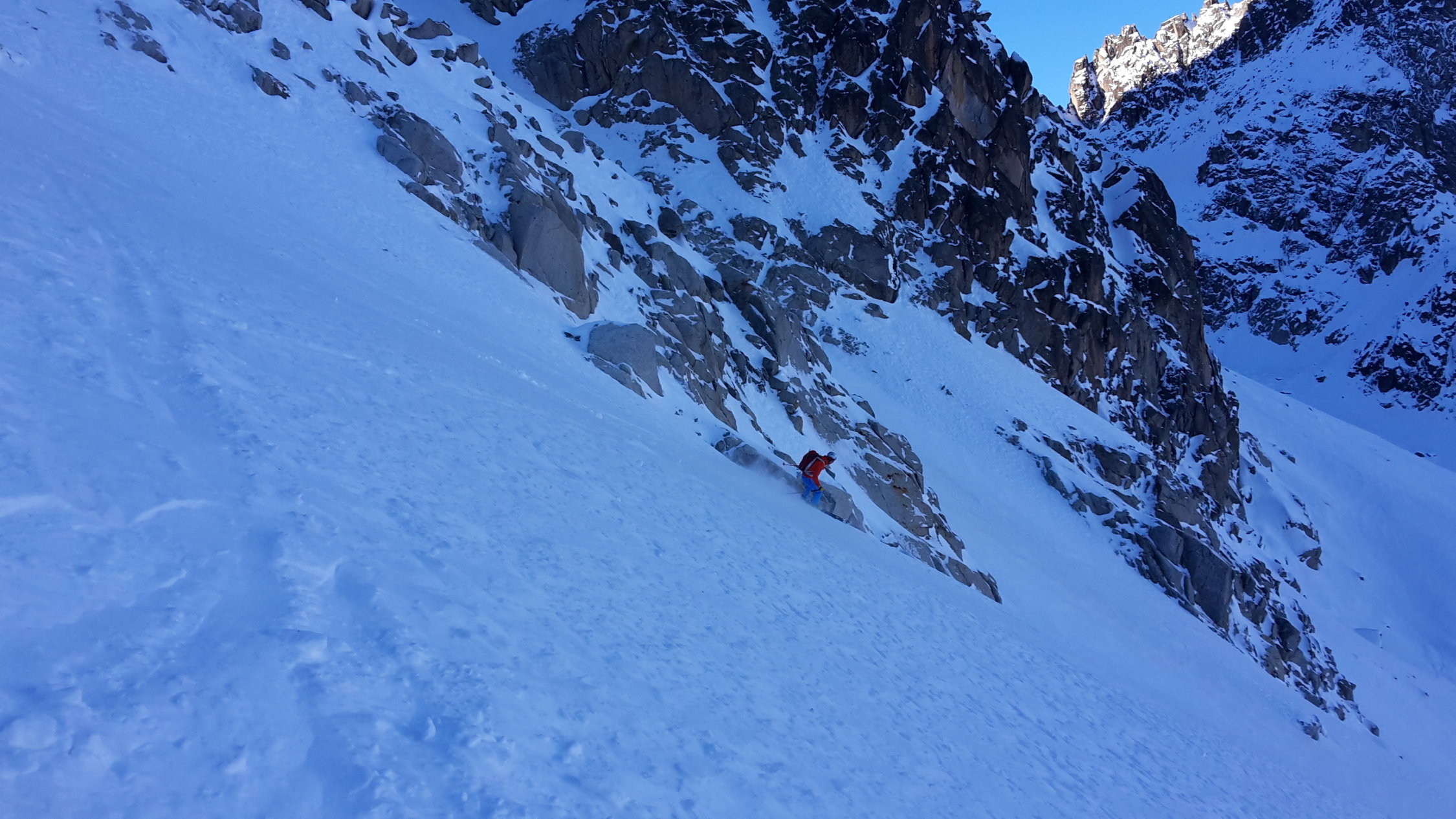 Die Abfahrtsbedingungen im Couli waren dann aber richtig gut. Ab 2600m änderte sich dies dann aber schlagartig und man wähnte sich in einem Minenfeld.