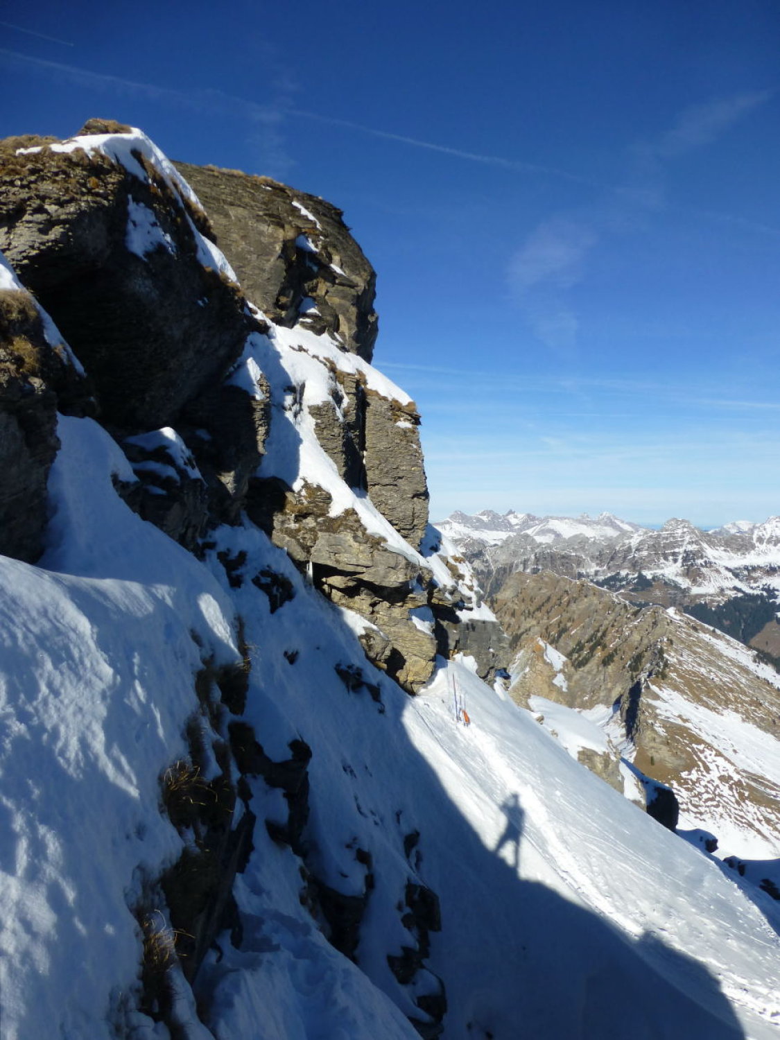 Bleibt bis zu den nächsten Schneefällen v.a. im unteren Bereich mittelmässig, aber gut machbar. Para NE-Flanke wurde auch gemacht und weist vergleichbare Verhältnisse auf.