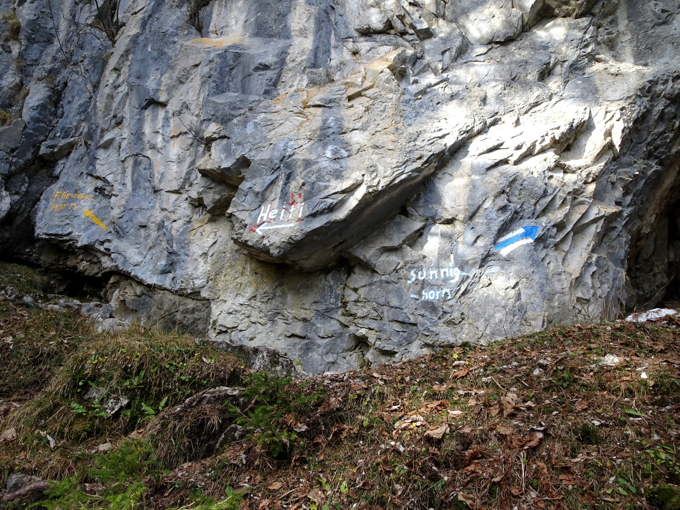 Vom Tal sah alles trocken aus, so dachte ich mir: gehe mal schauen und aus dem Schauen ist wieder eine schöne Tour geworden. Der Weg war trocken, aber nicht turnschuhmässig. Gute Schuhe sind Bedingung für normale Wanderer. Spezialisten rennen mit verstärkten Turnschuhen hinauf, aber dies ist ihr Problem. Sehr empfehlenswert ist der Helm. Mit dem Verkehr von Gämsen und Wanderern kann es sein, dass Steine hinunterfallen un die sind für alle Köpfe, sei es die von Spezialisten oder Sonntagswanderer genauso hart und gefährlich.Diese Tour ist landschaftlich ein Genuss, man sollte sie zu Sommerbeginn machen wenn die Flüeblüemli die ganze Wand dekorieren. Hat man Glück, sieht man neben den Gämsen Aspis Viper oder die eindrückliche schwarze Kreuzotter. Wobei das mit dem Glück haben ist eine persönliche Ansichtssache. Ein Besuch der Kirche Erlenbach mit ihren Fresken aus dem Mittelalter sollte drin liegen, es lohnt sich.