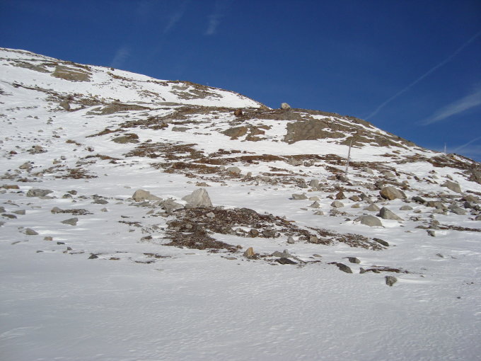 Ca. 50m vor dem Skidepot entschied ich mich in Ermangelung von Harsteisen zur Umkehr.