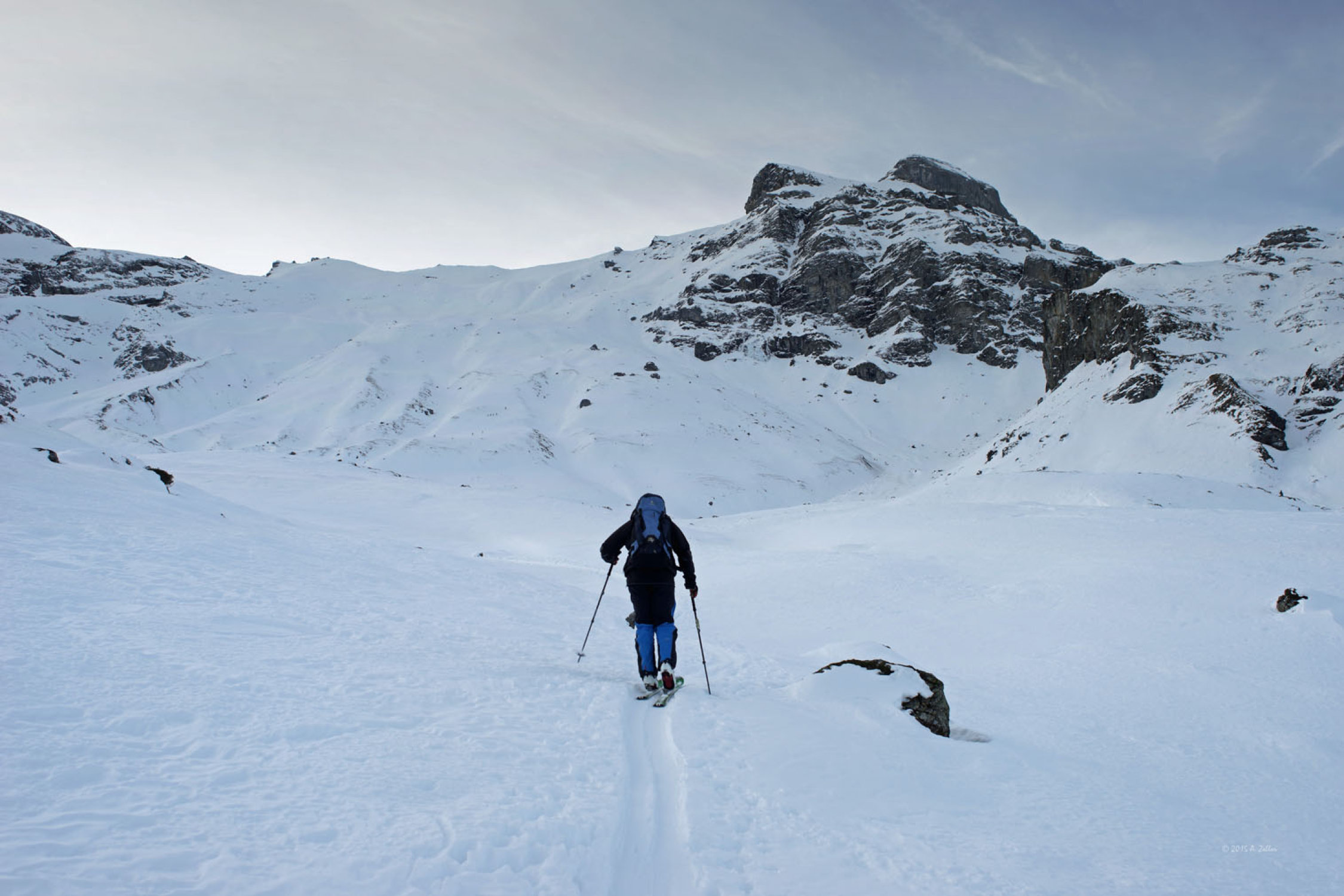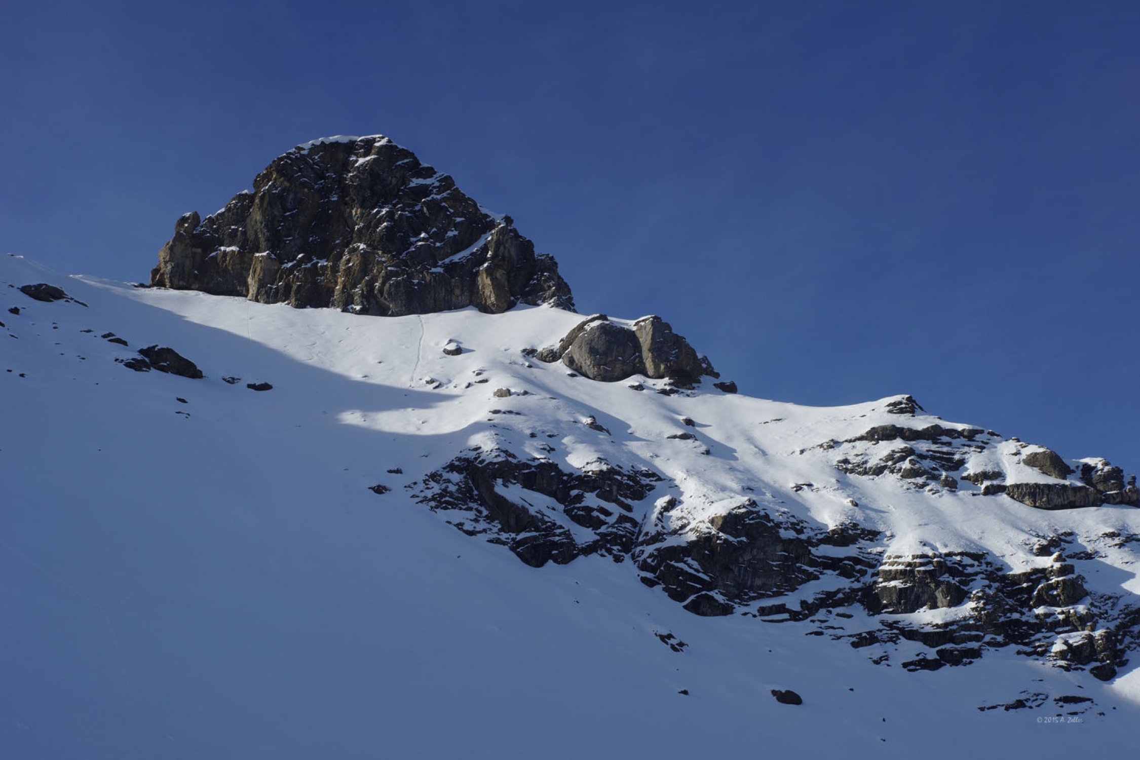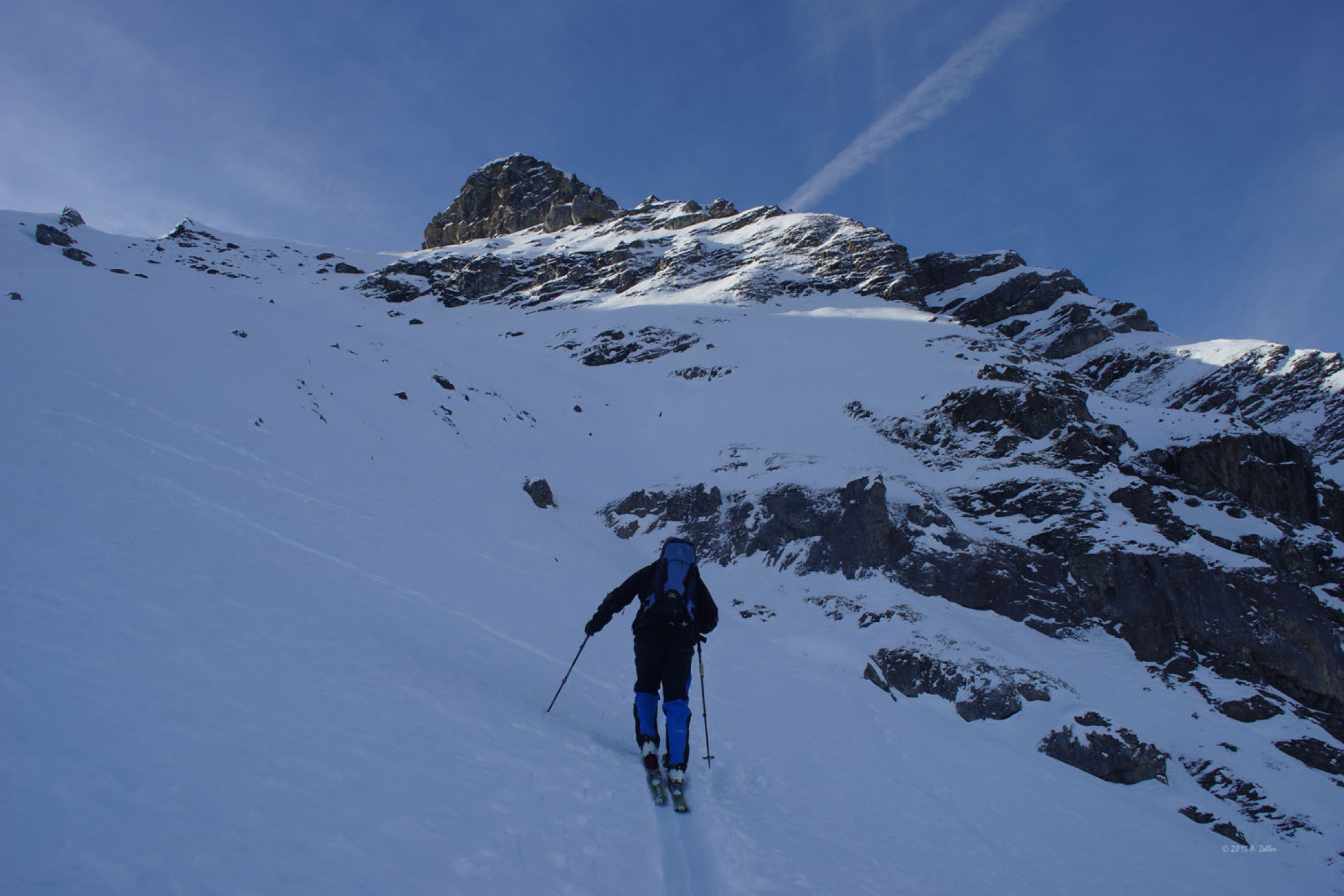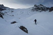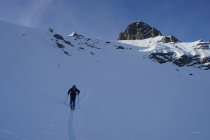 Steinkontakte auf Rücken nicht auszuschliessen, kann aber in diesem felsigen Gelände auch nicht erwartet werden, in Rinnen problemlos zu fahren.