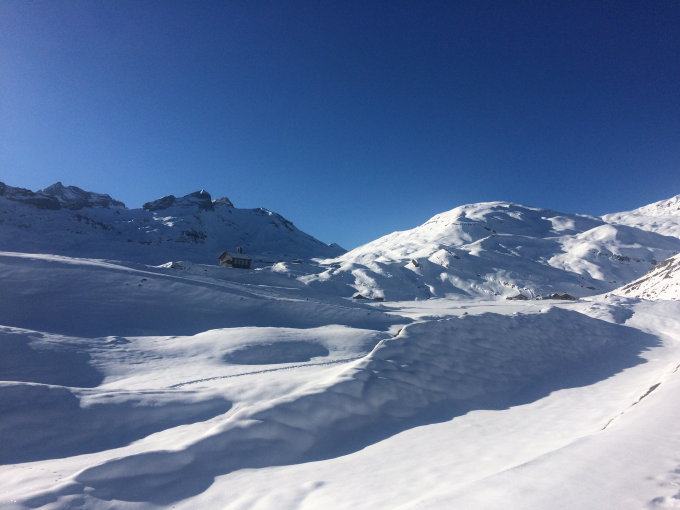 Ab Schwarzenbach erst mal 15 Minuten Ski getragen. Dann durchgehende Schneedecke, bis auf zwei oder drei kurze Tragestellen. Via Stäfeli, Siwboden in schöner Spur. Ab Rossbodenegg bin ich erst mal weiter Richtung Seestock in schöner Spurarbeit, da ich urpsprünglich dahin wollte. Leider fehlte ein Stück bei meinem Kartenausdruck, so dass ich die Route nicht gefunden habe. Kurzerhand bin ich durch ein Nordwest-Coiloir auf den Rossgrat (2282m). Da mir die Abfahrtsroute vom Rossgrat zurück zum Siwboden zu wenig Schnee hatte und ich Steinkontakt befürchtete, entschied ich mich spontan für die grossartige Pulverabfahrt auf Route 634b nach Osten Richtung Ober Stafel (1888m). Dort wieder angefellt und einmal um das Alpler Horn herum gespurt und auf Route 633b auf den Sangigrat (2279m). Wieder eine tolle Rundumsicht und wunderbare Pulverabfahrt auf einer Variantenabahrt via Sangiboden, Gandlistöckli und oberhalb des Baches weiter nach Stäfeli. Von da auf der Fahrstrasse zurück nach Schwarzenbach. Vor allem ab etwa 1250m etwas ruppig.