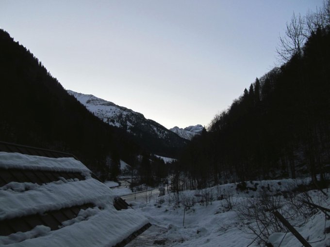 Schnee: Bis zur Gräsalpe 1281 m die Schneeschuhe auf dem Rucksack getragen. Die Schneedecke war zunächst verharscht und tragend, dann aber wurde es im Bruchharsch sehr mühsam bis ich auf etwa 1700 m den etwas abgeblasenen Nordwestrücken erreichte,wo es wieder leichter ging.