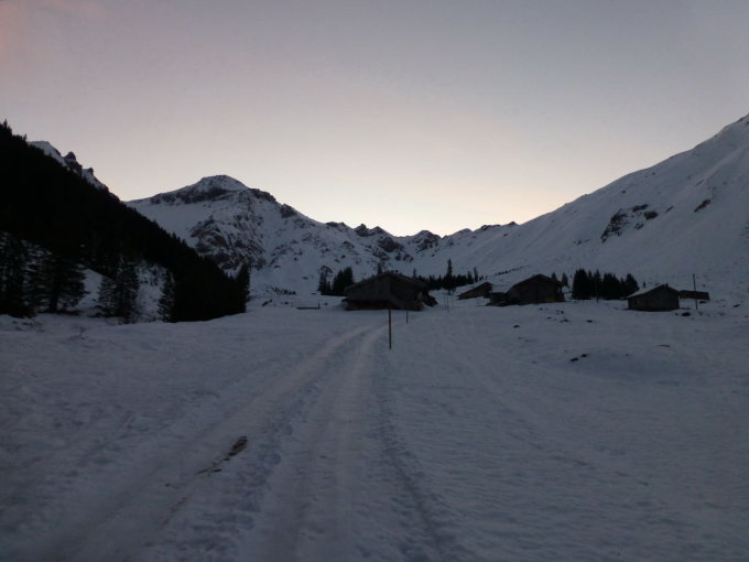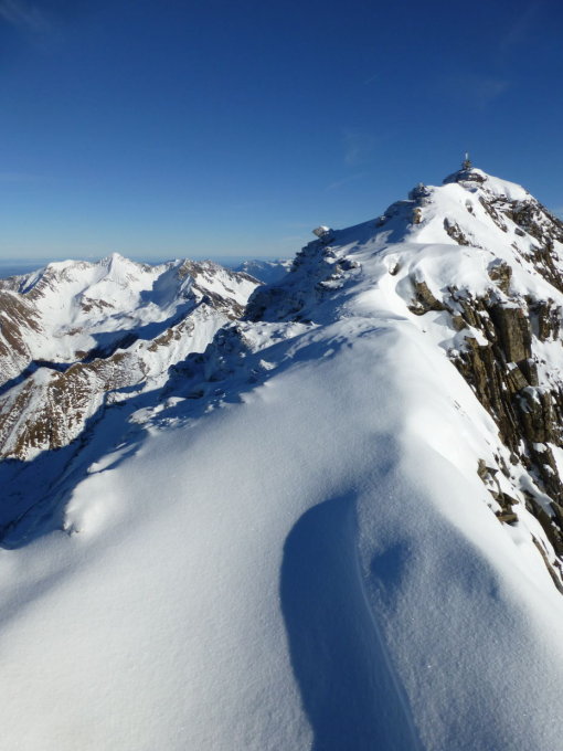 Schnee: Strasse bis ca. 1570m geräumt (Parkmöglichkeit), aber im oberen Teil vereist. Ca. 30-50cm Schneeunterlage, bis 2300m vom Regen durchfeuchtet und abwechselnd Harsch oder hart. Darüber ca. 5cm frischer Pulver. Im WNW-Couloir meistens Trittschnee, in der WSW-Flanke und auf dem SW-Grat z.T. Wühlpassagen.