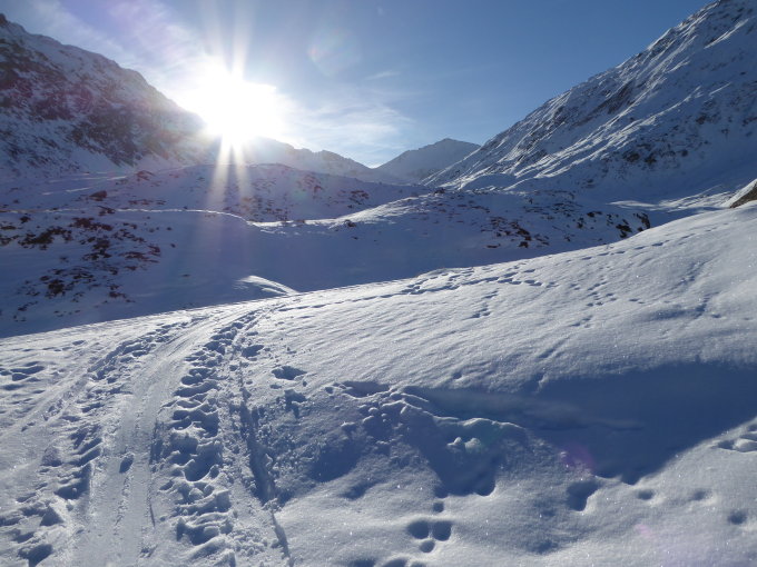 Von Realp gestartet um 9.30 Uhr und schon bei den Depots der Furkabahn konnten die Skis angelegt werden. Die Strasse hat recht gut Schnee und die Skis können bis zum Ski Depot angeschnallt bleiben. Es hat recht gut Schnee im Gebiet ist sicher weniger als in andern Jahren, doch neben der Spur muss aufgepasst werden da es noch verdeckte Steine hat. Heute waren etwa 10 Leute am Berg. Vom Stellibodenhorn ist die Querung nicht gut zu machen da kein Schnee dort liegt. Die Abfahrt war wirklich super bis zum Oberstafel, dann ist ja die Strasse wie eine Rennpiste jedoch auch gut mit Schnee versehen. Die Tour hat sich gelohnt und es war der Plausch mit viel Sonne und gutem Schnee. Der Stotzigen lohnt sich jedoch nicht was wir einsehen konnten.