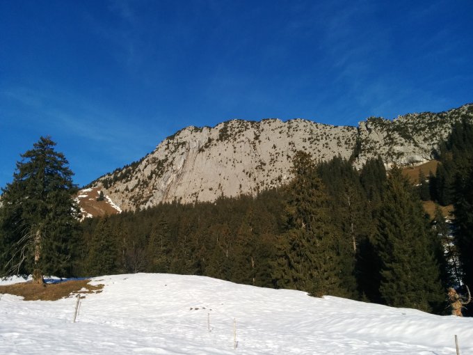 Perfekte Verhältnisse: Wand komplett trocken (außer ganz links, dort sah es stellenweise noch etwas feucht aus) und T-Shirt Wetter! Es waren sonst nur zwei andere Seilschaften unterwegs, es ist also ruhig am Brüggler... Fahrstrasse ist bis kurz unterhalb des Parkplatzes offen (5 CHF / Tag). Im Zustieg und oben auf dem Grat hat es noch ordentlich Schnee, festeres Schuhwerk empfehlenswert.