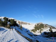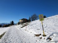 Aus dem tiefen Hochnebel entflohen und den ganzen Tag bei warmen Temperaturen bei makellos blauem Himmel schön zu Wandern. Die Wege sind weitgehend schneebedeckt - teils hart gefroren, teils unangenehm weich.