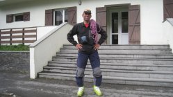 Gleich unterhalb der Kirche geht der schmale und steile Pfad bergabwärts, durch ein Birkenwäldchen und vorbei am Friedhof geht es hinab nach Gergeti, wo wir die ersten Häuser erreichen. Bei leichtem Regen geht es die Straße entlang des Flusses hinunter zur großen Brücke die in den Ortsteil Stephansminda führt. Jetzt nur noch über den großen Platz mit dem Denkmahl und unser Ziel das Hotel Stephansminda ist erreicht. Man darf gespannt sein ob es uns dieses Jahr wieder gelingt ein Bier hier zu bekommen … leider ist das Hotel auch in diesem zu fein uns zu bewirten … kann man nichts machen! Inzwischen sind auch der Bernhard und der Stefan angekommen und wir verstauen unsere Ausrüstung auf der überdachten Veranda des Hotels.