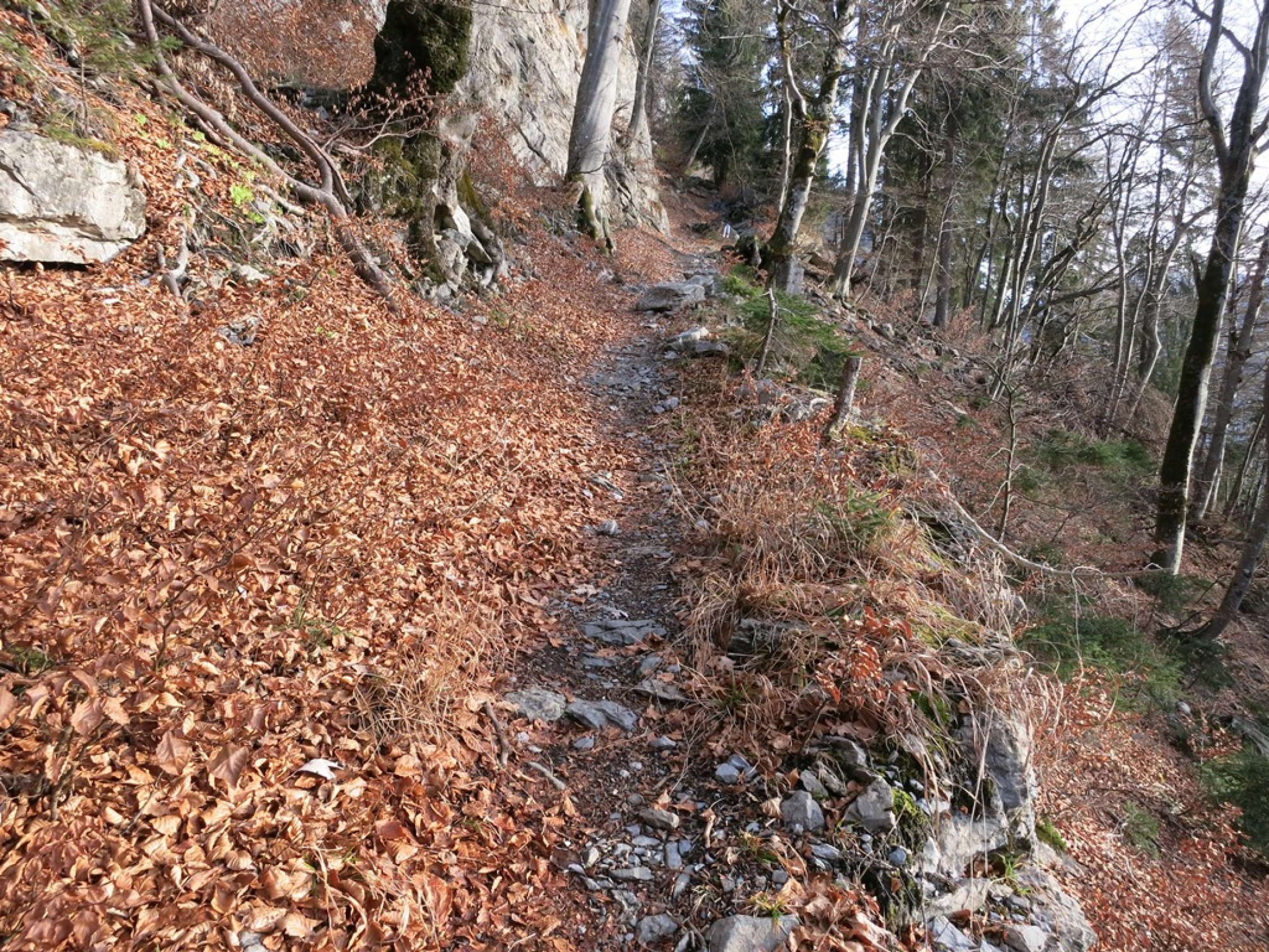 Abstieg via Lanaberg ist sehr aussichtsreich, da man bis weit hinunter auf ca. 900 Meter, in offenem Gelände ist, bevor man wieder in den Wald kommt…