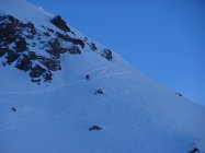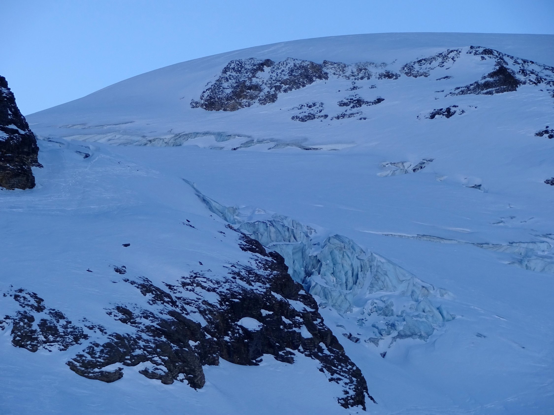 Frühstücksplatz heute unten rum. Normalroute ziemlich "felsig". Besten Dank an Wale fürs Spuren bzw. austreten der Spur. Der Gletscher ist stark gezeichnet vom warmen Sommer- und Herbstwetter (siehe auch Bilder)