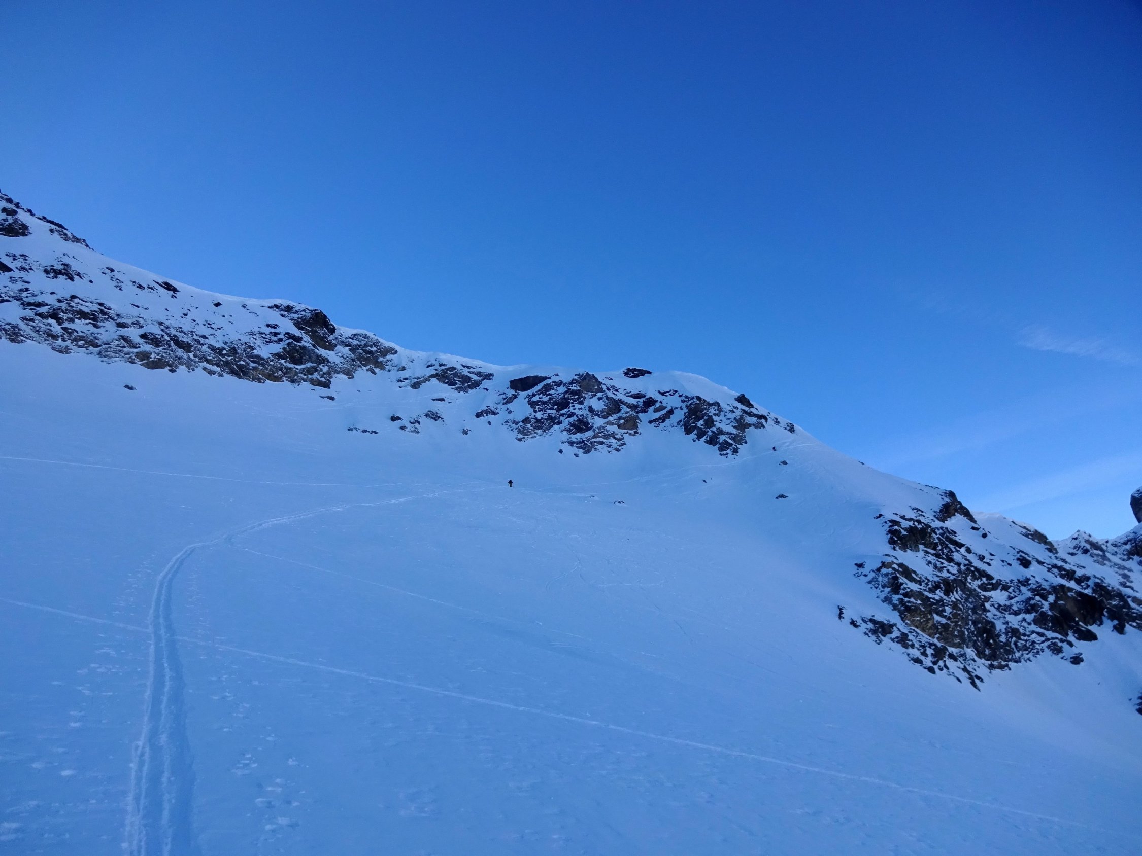 Steghorn gespurt. Ansonsten wenig los. Daubenhorn, Schwarzhorn, Rinderhorn, Altels...ohne Spuren und arg verblasen.