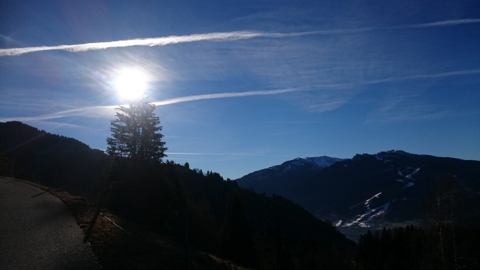 Beste Bedingungen auf der ganzen Strecke, ab etwa 900m mollig warm, fast zu warm.