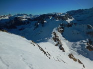 Start der Tour am 7.40 Uhr bei der Ruosalp, weiter zur Ruosalper Chulm, bis zum kurzen Fussaufstieg des zweiten Couloir das heute gute Trittspuren aufweiste, aber recht steil ist mit 40 Grad auf ca. 80 Höhenmetern, dann kam endlich wieder einmal Pulverschnee bis zum Gipfel.