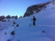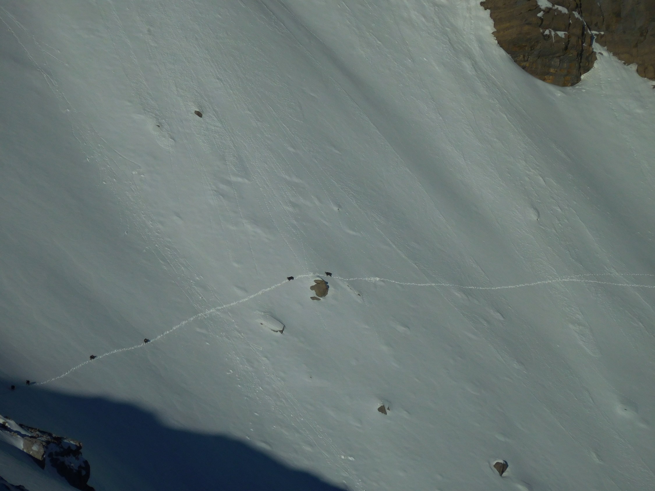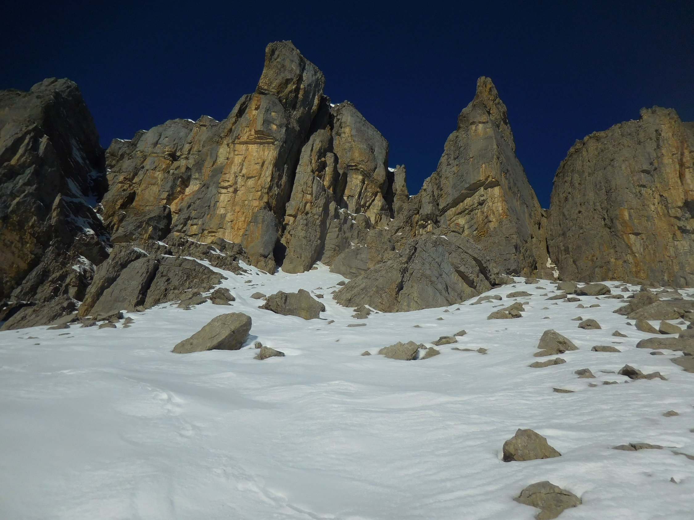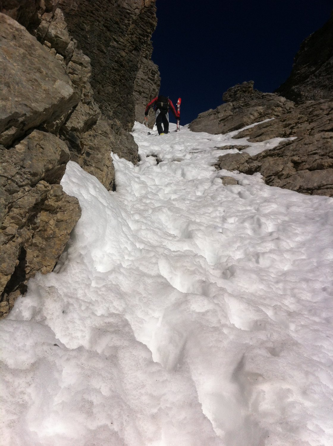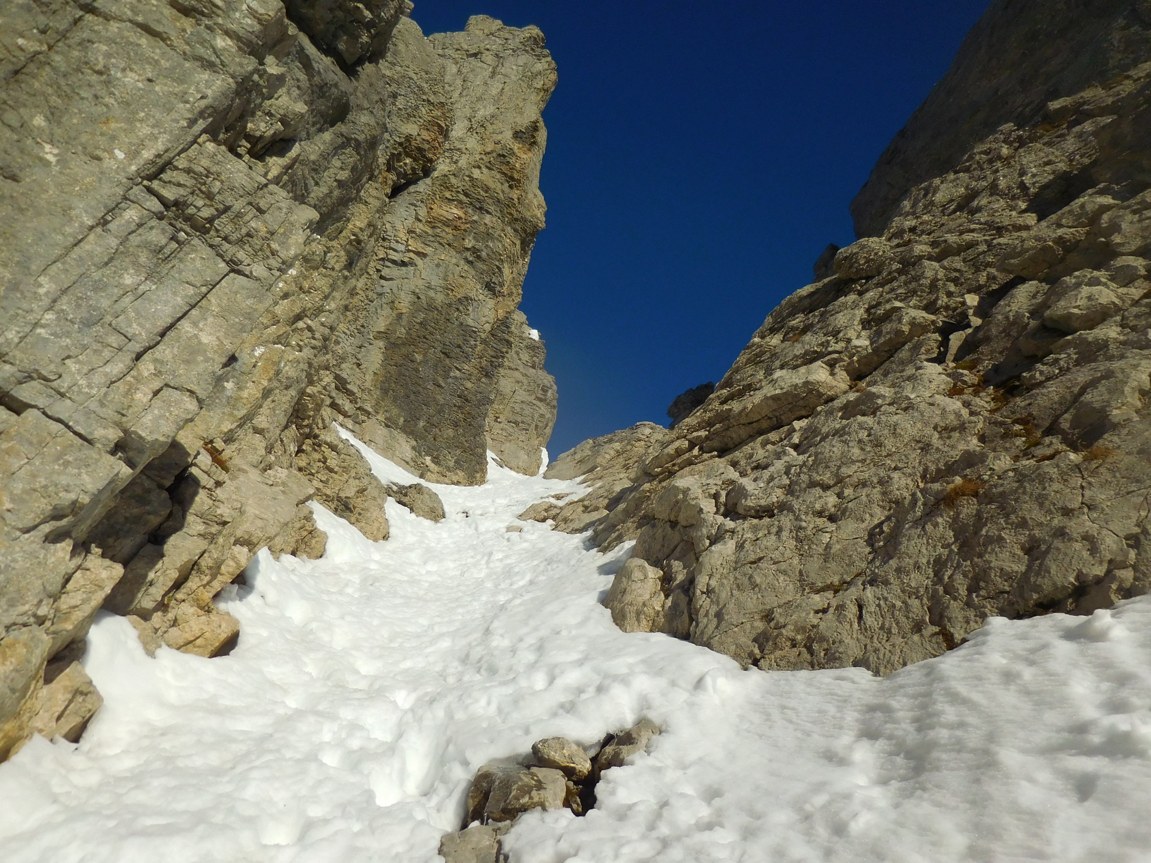 Eine Tour mit Hochalpinem Charakter, Alpintechnisches Können ein muss vorhanden sein. Manchmal sind Steigeisen und Pickel nötig für das steile Couloir.