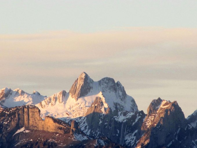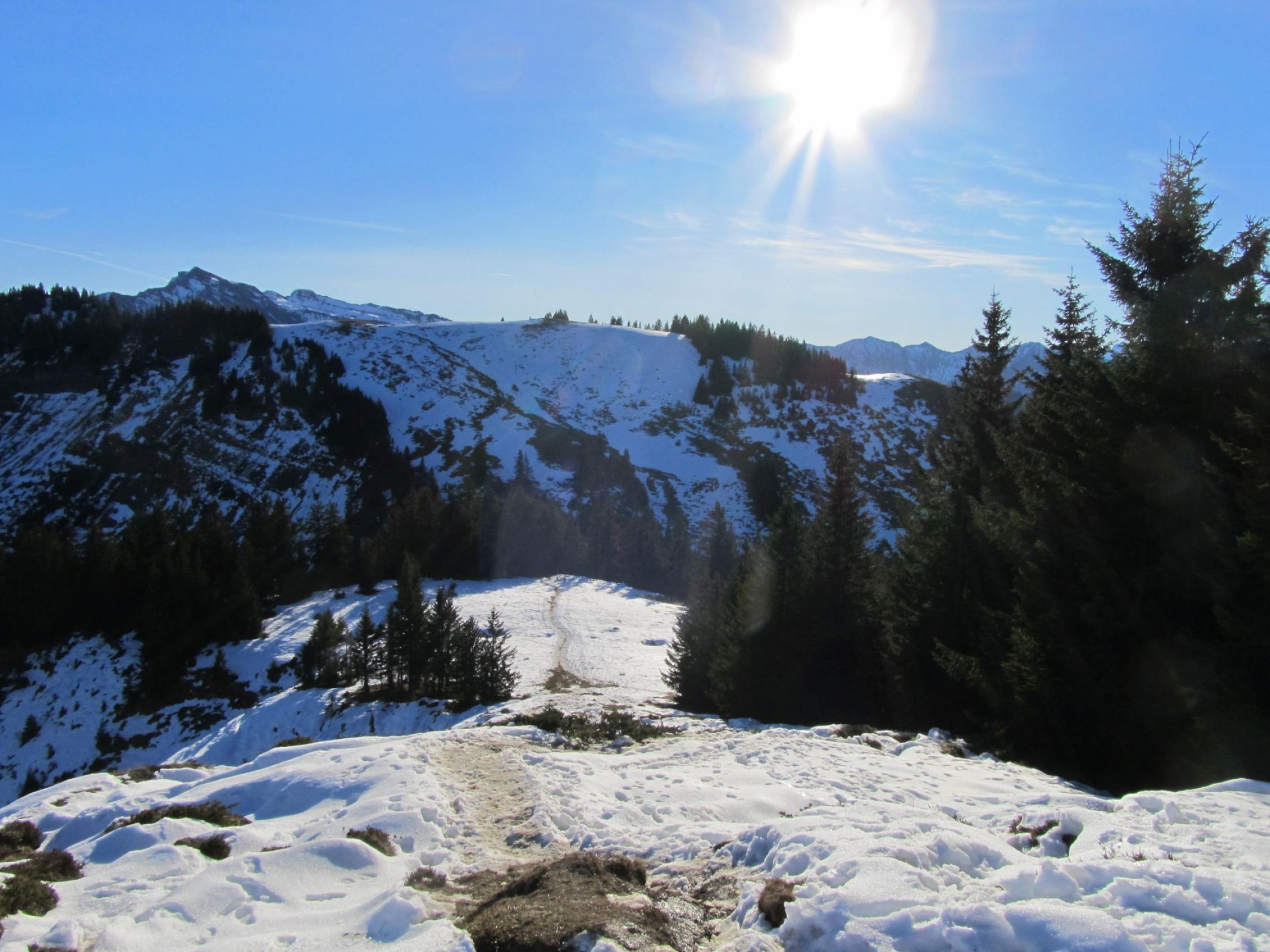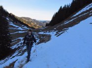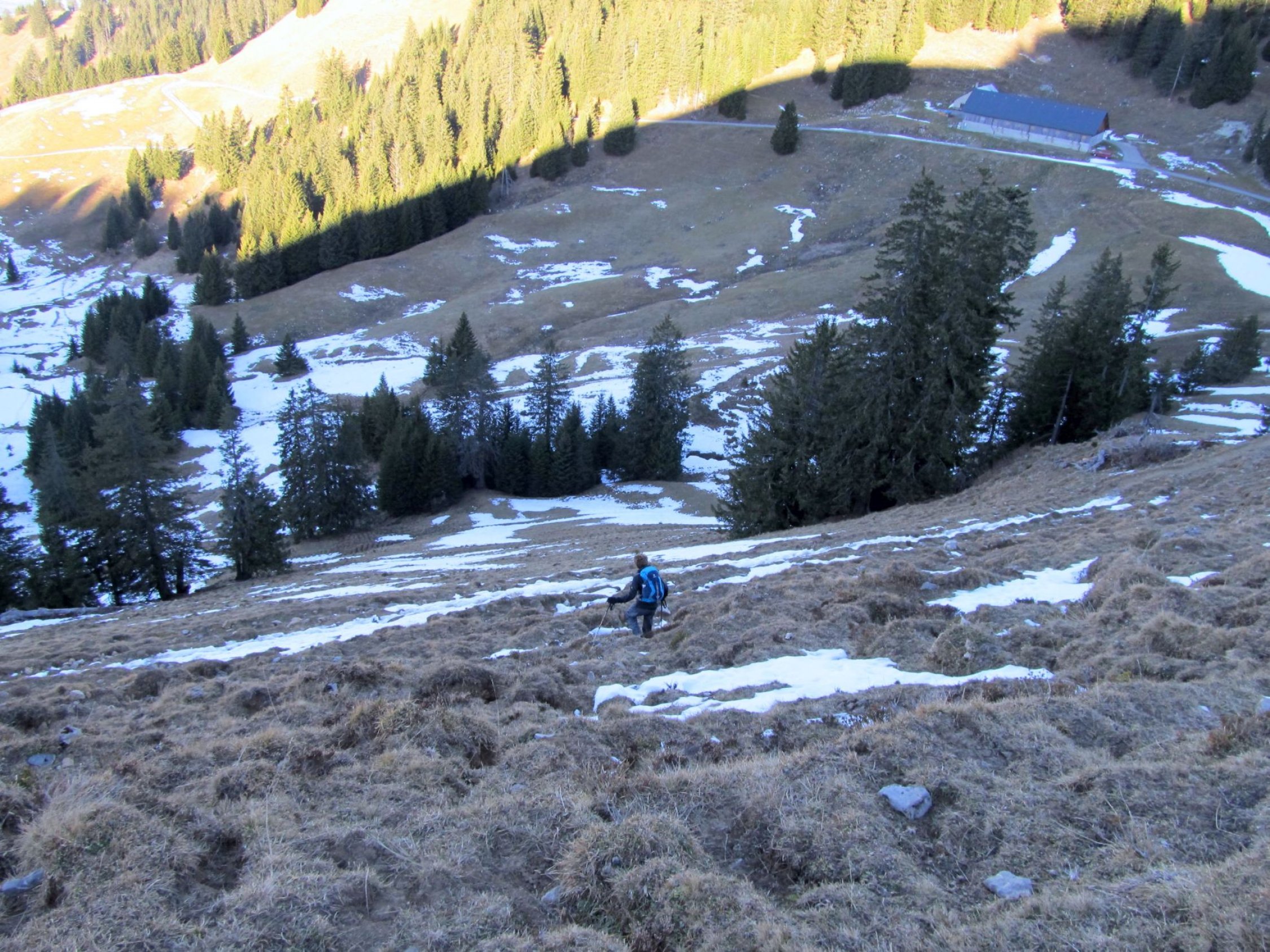 Im Aufstieg zum First zunächst auch noch hartgefrorener Schnee, der Schlussaufstieg schneefrei und trocken.