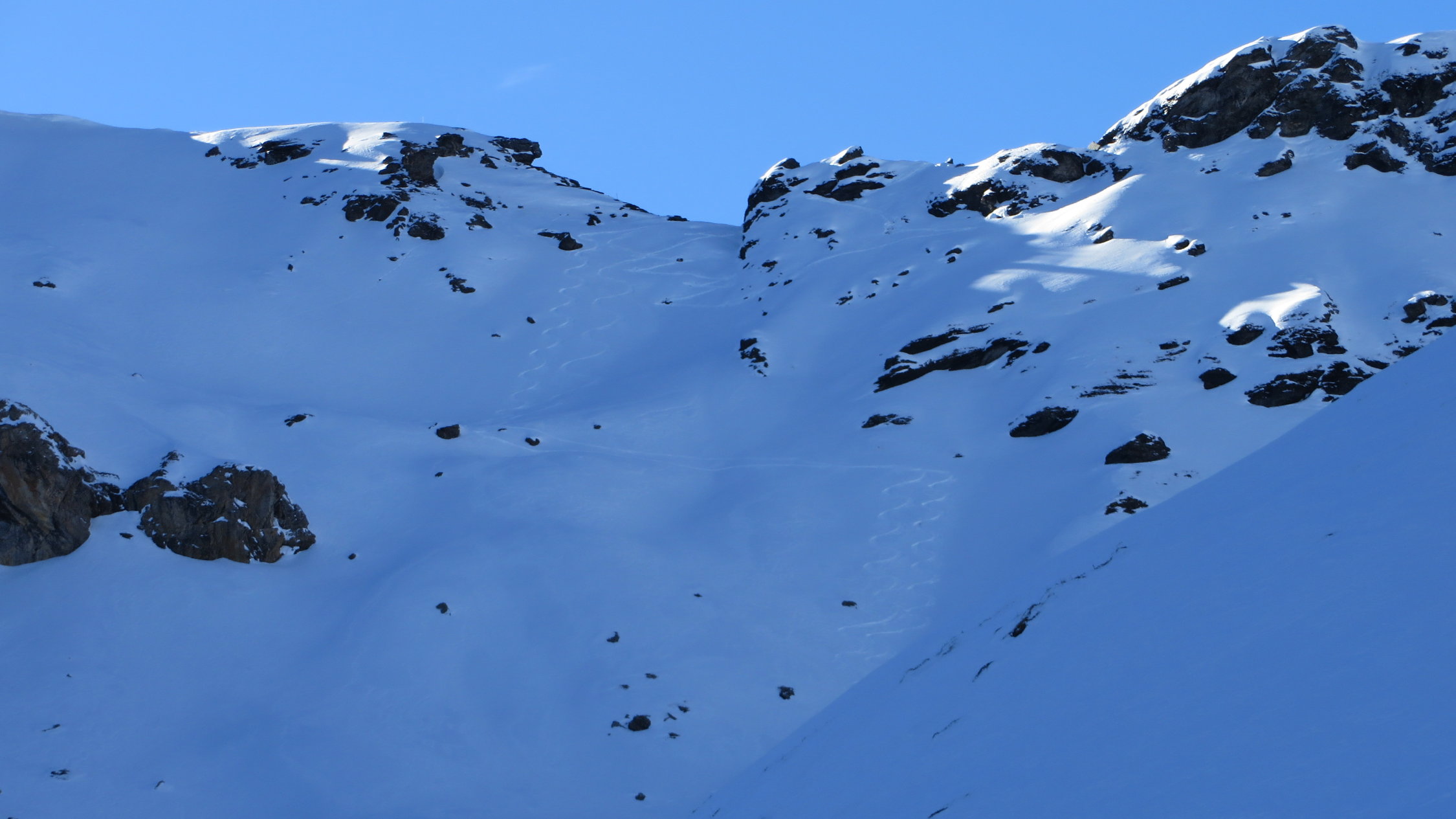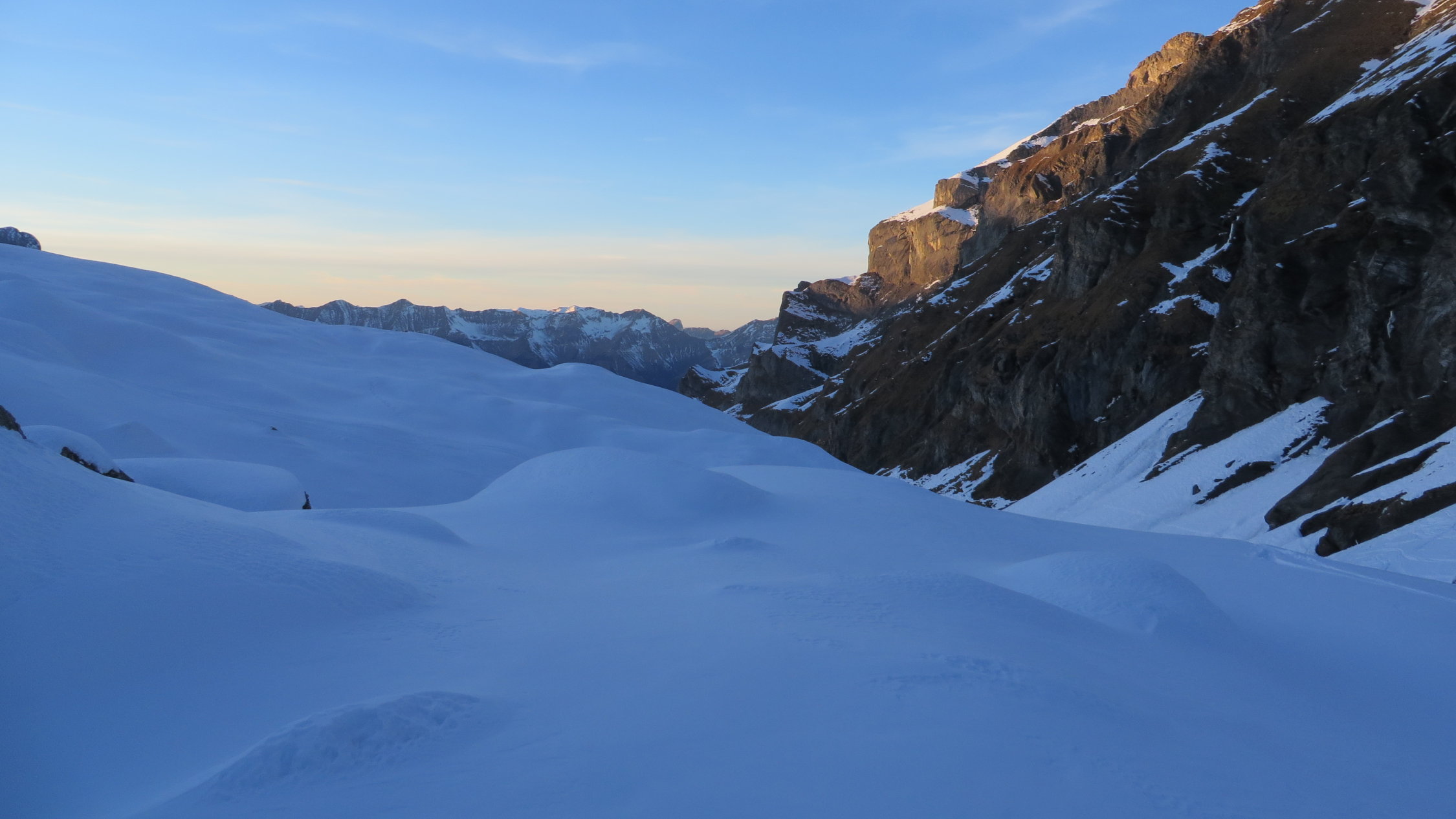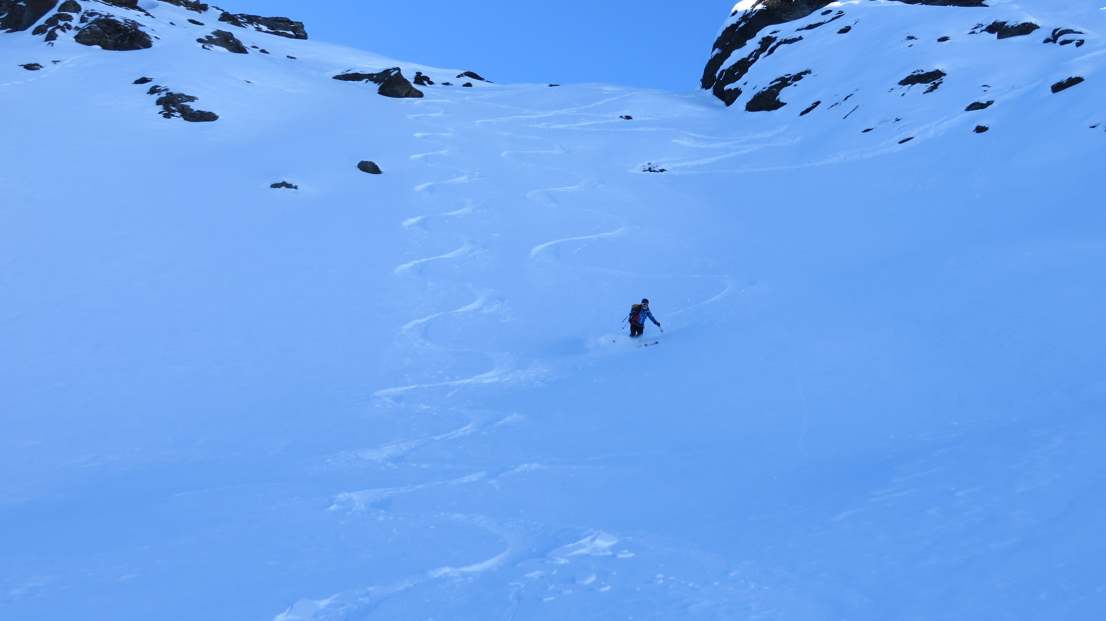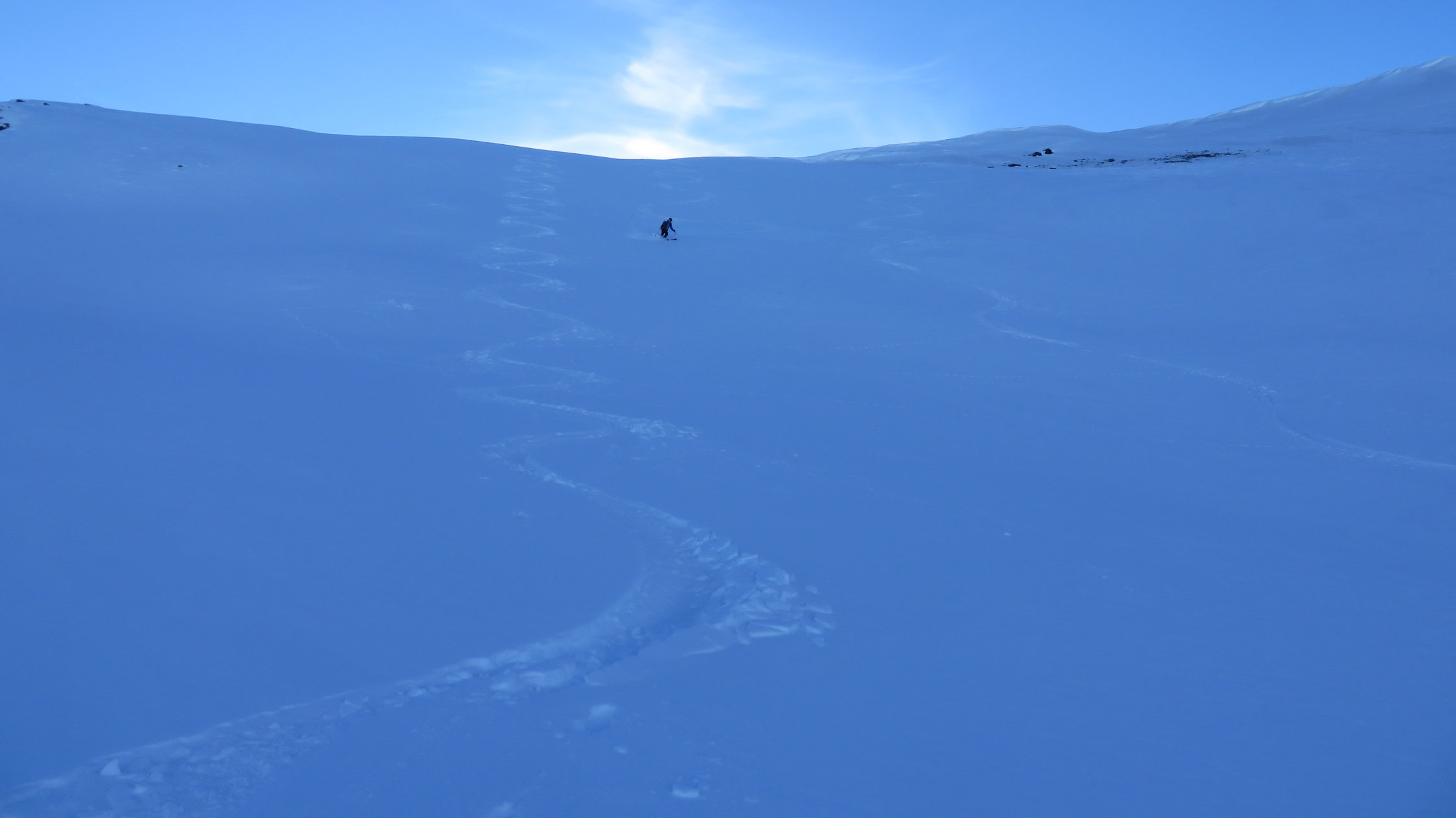 Darüber immer noch sehr gute Verhältnisse meist schöner Pulverschnee dazwischen manchmal ein leichter Deckel aber gut zum Fahren.