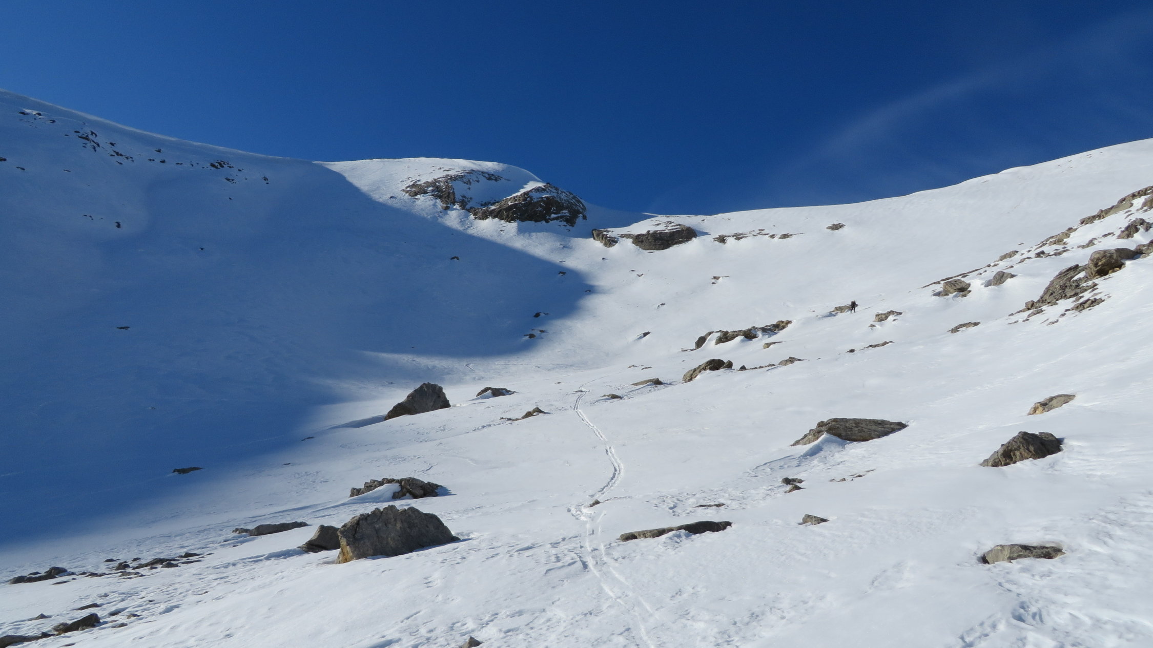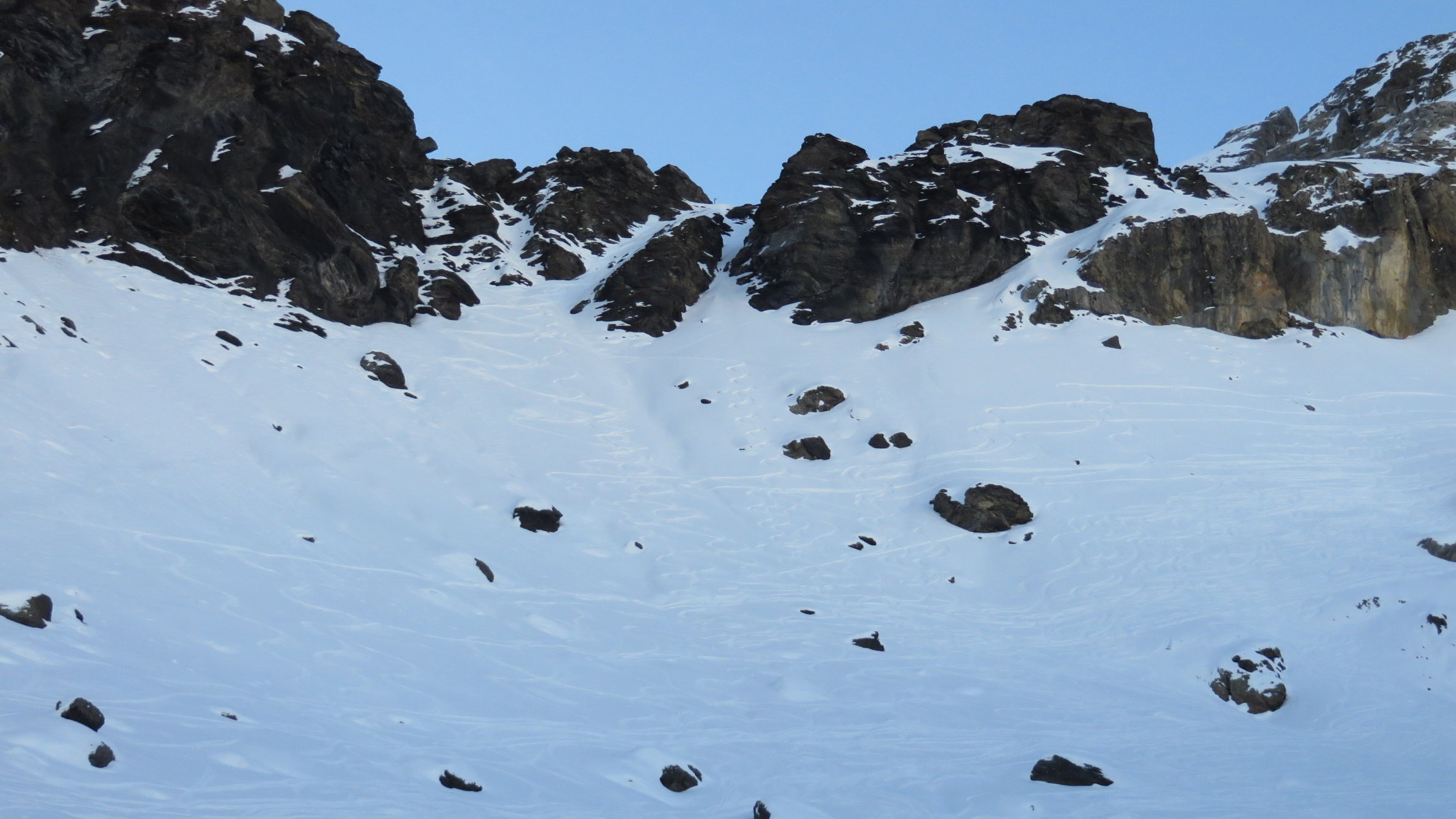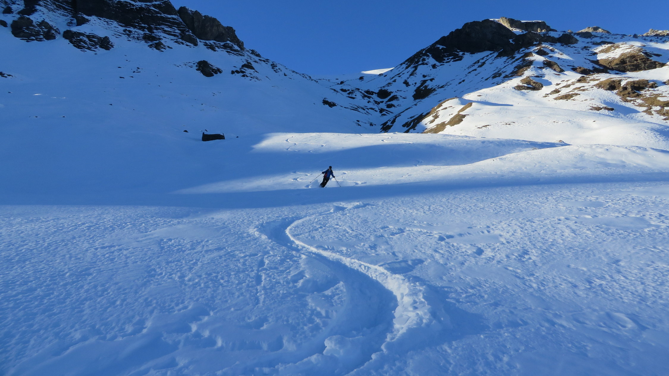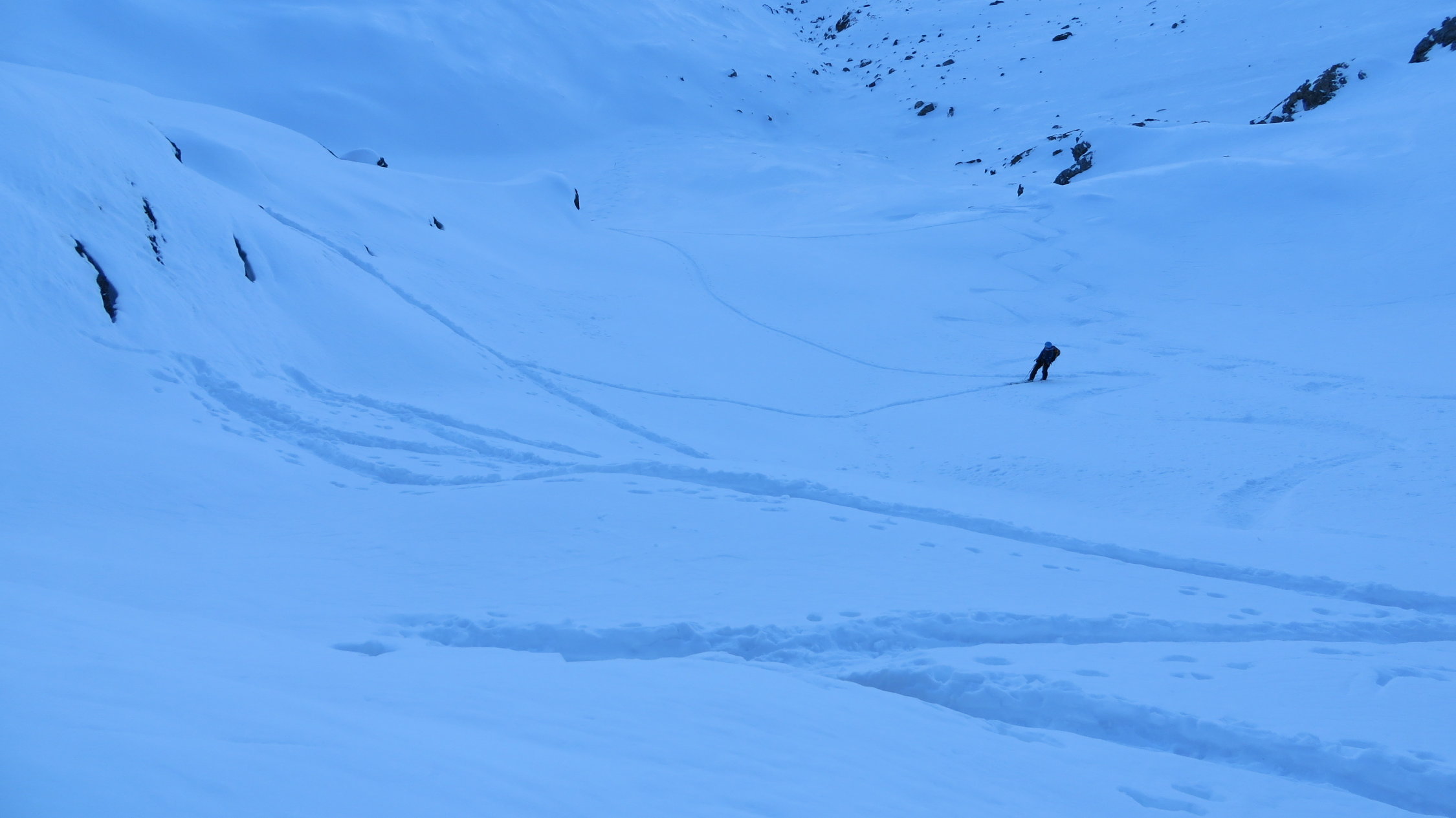 Darüber immer noch sehr gute Verhältnisse meist schöner Pulverschnee dazwischen manchmal ein leichter Deckel aber gut zum Fahren.