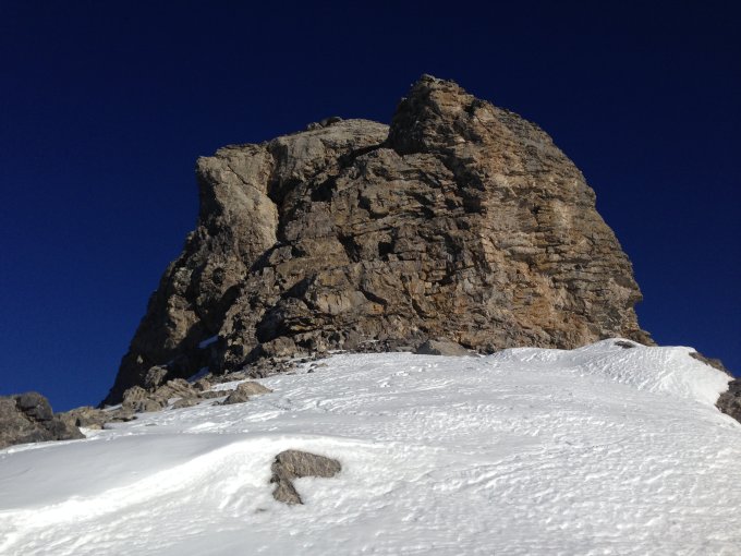 Gute Verhältnisse auf dieser Höhe u.a. da der Hang im Schatten liegt. Das in der Sonne befindliche Tschingellochtihorn war bereits stark ausgeapert und nicht mehr machbar. Im Aufstieg waren Harsteisen wegen dem eisigen und steilen Aufstieg nützlich. Wir waren alleine auf dem sonnigen Gipfel. Das letzte Stück lässt sich gut erklettern. Die Abfahrt war dank dem tragfähigen Deckel gut zu fahren. Teilweise hatte es sogar etwas Pulver. Super Tag bei dem wenigen Schnee noch gut zu machen.