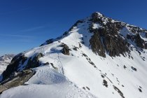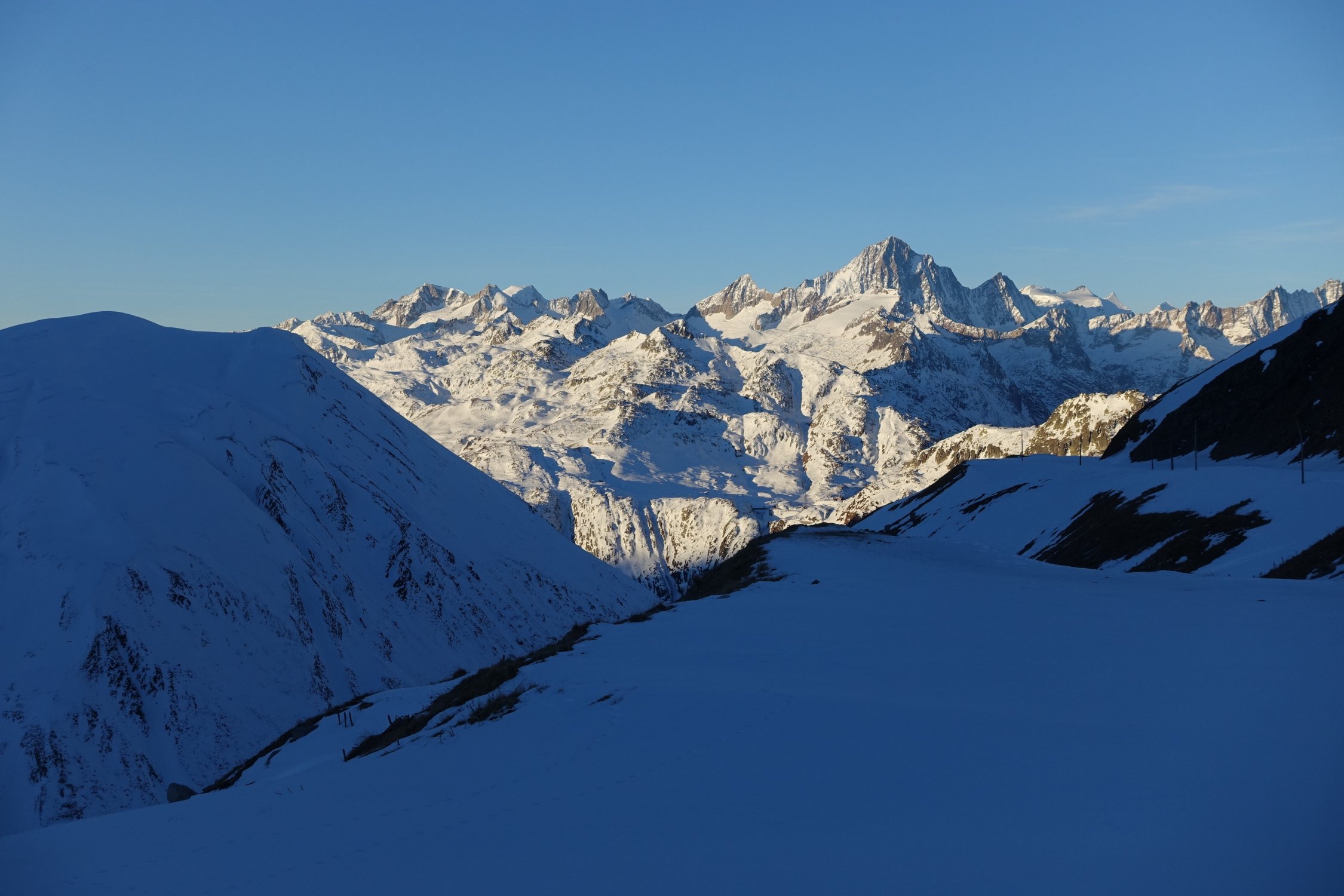 Das Gross Muttenhorn ist ein prächtiger, formschöner Aussichtsberg und vor allem im Frühjahr ein beliebtes Tourenziel. Bei geöffneter Furkastrasse ist diese Route klassisch. Im Hochwinter wird die Route eher selten begangen, da die Traverse unter der sehr steilen Blauberg-Westflanke nur bei ganz günstigen Bedingungen, so wie wir sie jetzt vorfinden begangen werden darf.