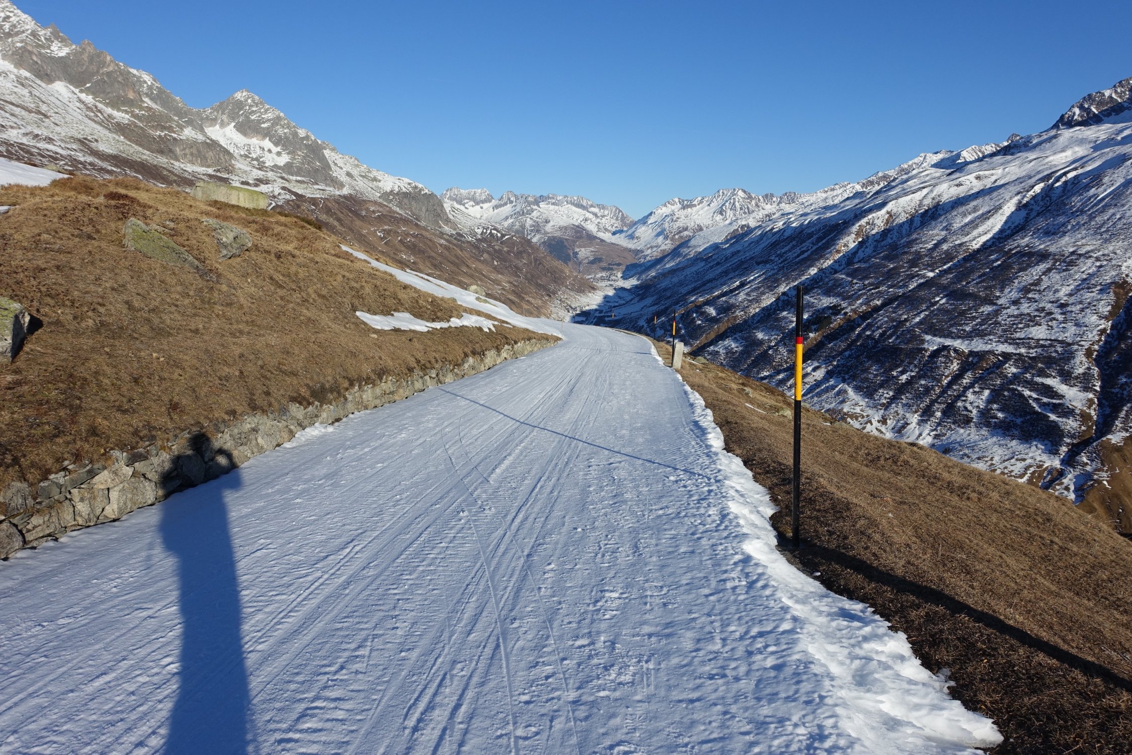 Die Furkastrasse ist derzeit bis Passhöhe gepfadet und erlaubt ein zügiges Vorwärtskommen.
