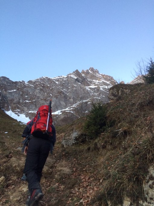 Steigeisen nicht zwingend nötig, Schneeschuhe für den Abstieg über Glärnischhütte empfelenswerrt.