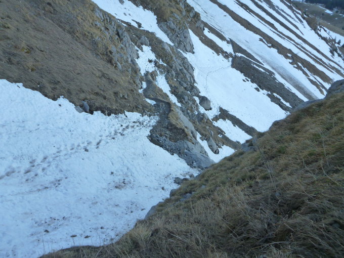 Abmarsch 9:10 Uhr bei +1°C von der Schwägalp. Heute habe ich 3:30 Std. gebraucht. Der immer weniger werdende Schnee war wieder pickelhart.