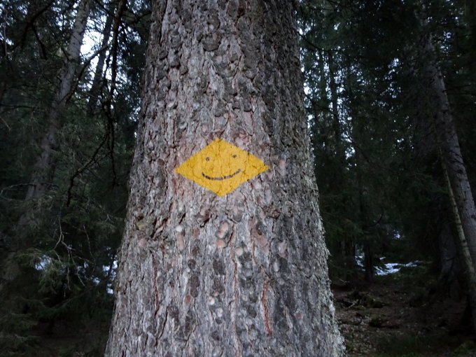 Die Schneeschuhe habe ich gar nicht mitgenommen. Bei den heutigen Verhältnissen war es eine alpine Wanderung mit, zwischen Trogenalp und dem Grat bei der Chrinde, langen Schneestrecken. Dank der nächtlichen Kälte und der vielen Begehungen, war die Spur hart und griffig, so ging es leicht und fast mühelos. Die Strasse war bis zur Abzweigung zur Trogenalp total aper, der Weg im Wald hatte nur kurze, vereiste Stellen, sonst perfekt.