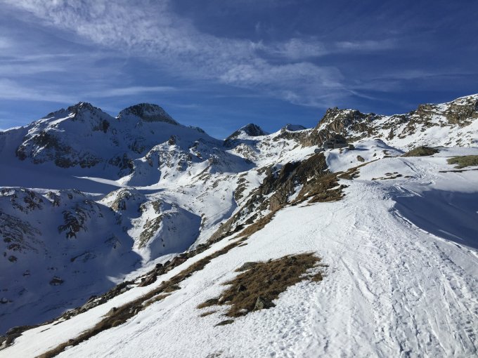 Wenig Schnee, aber von Realp weg mit Ski zu gehen. Von der Rotondohütte bis zum Gipfel gute Verhältnisse, wenn auch eher hart und mit sichtbaren Steinen.