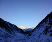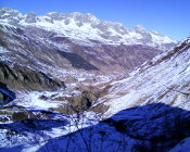 Strasse nach Gere von Anfang an schneebedeckt, einzelne Tragestellen. Brücke 1496 bis Schweif breite Spur, von Schweif bis kurz vor Im Cher einzelne ältere Spuren, danach keine Spuren mehr gesehen bis zum Pass.
