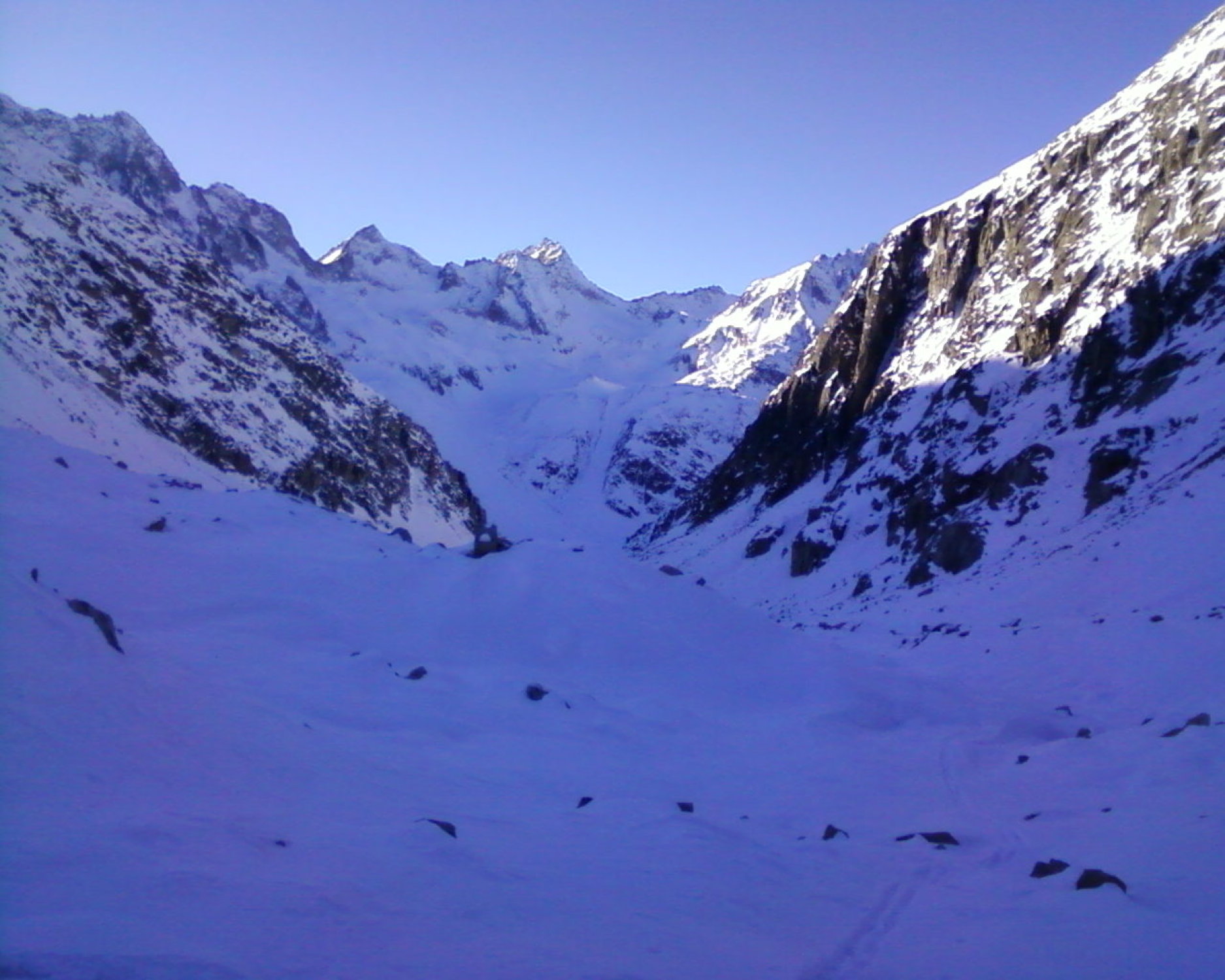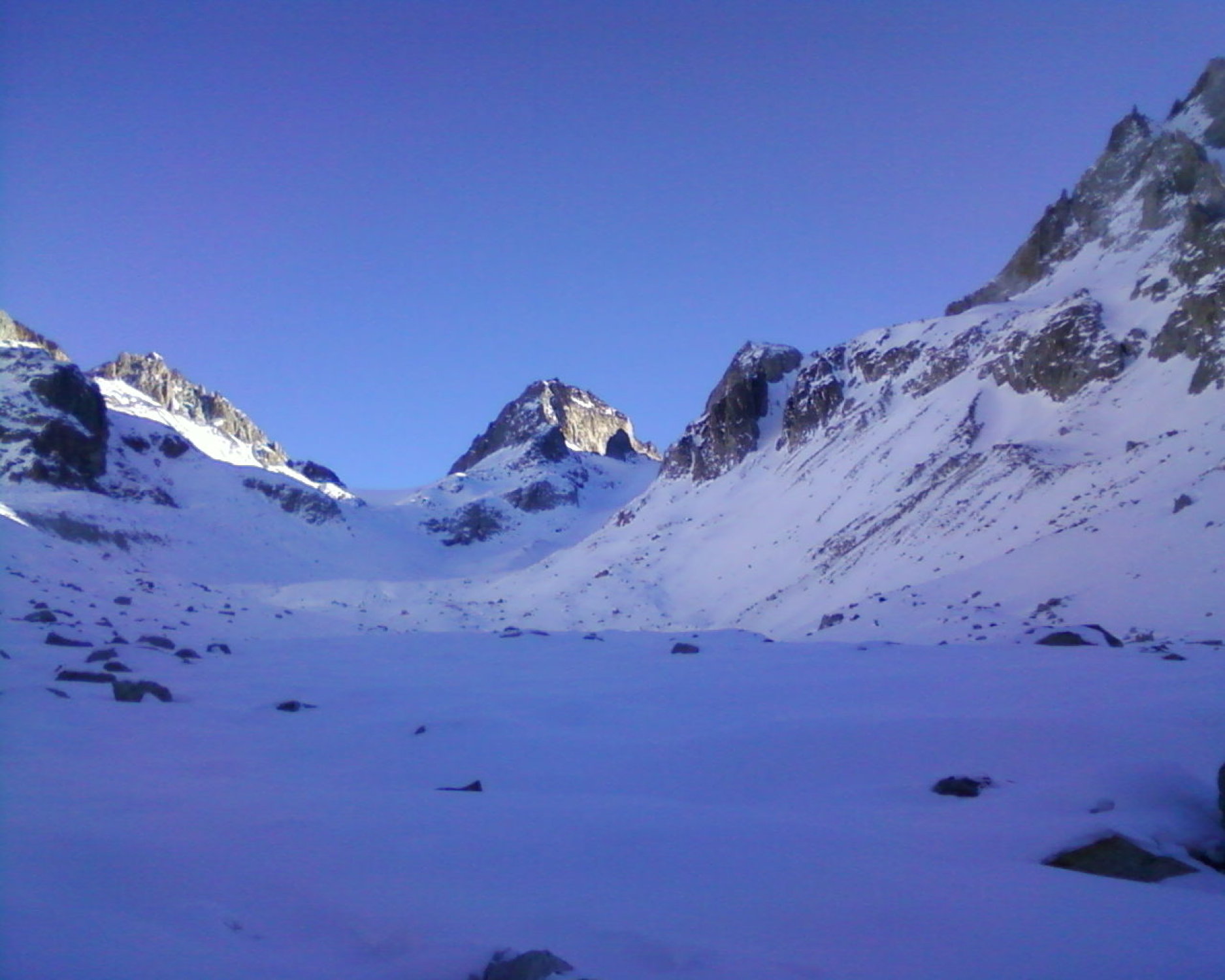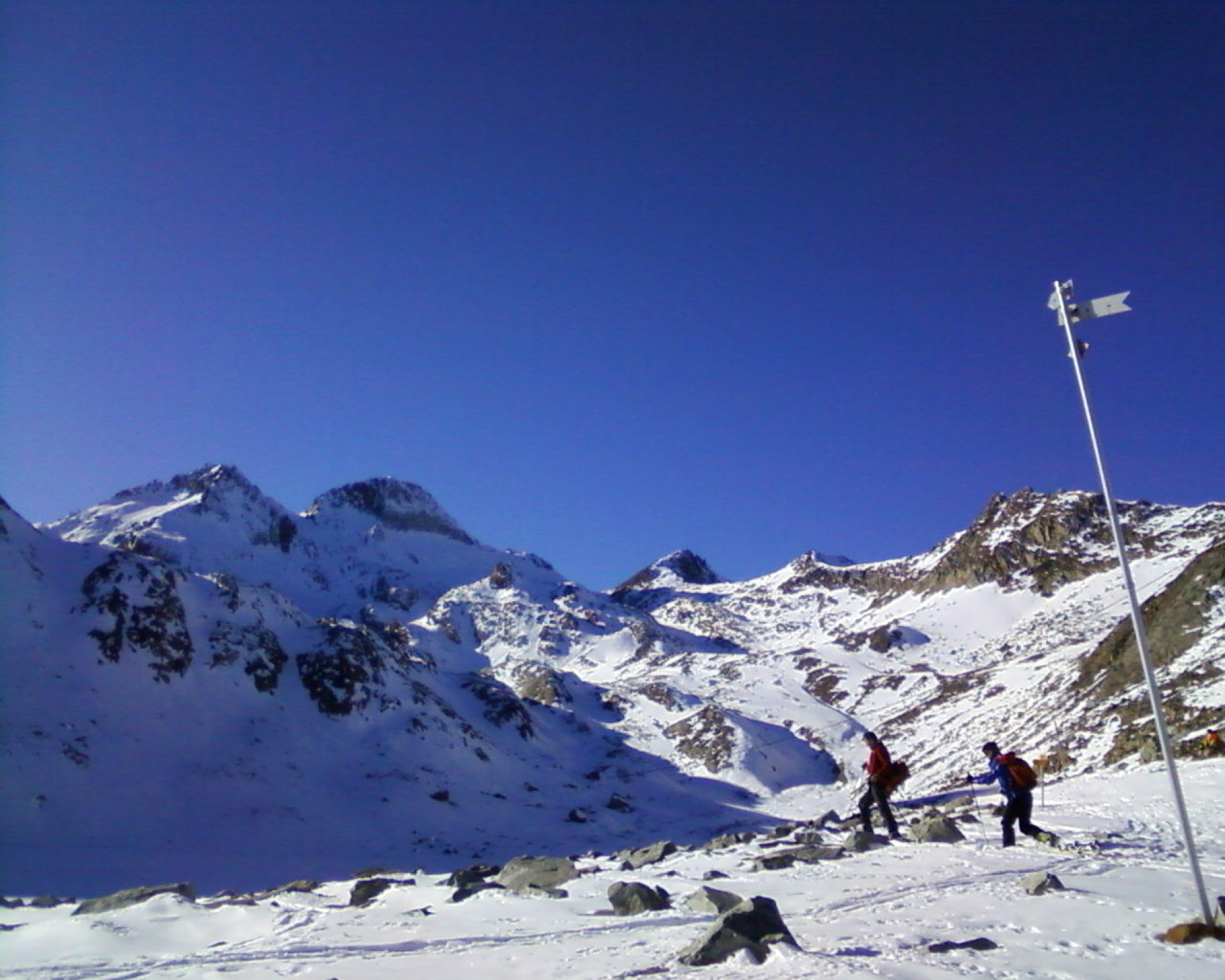 Ab 2300 hm genügend Schnee bis hoch zum Pass.