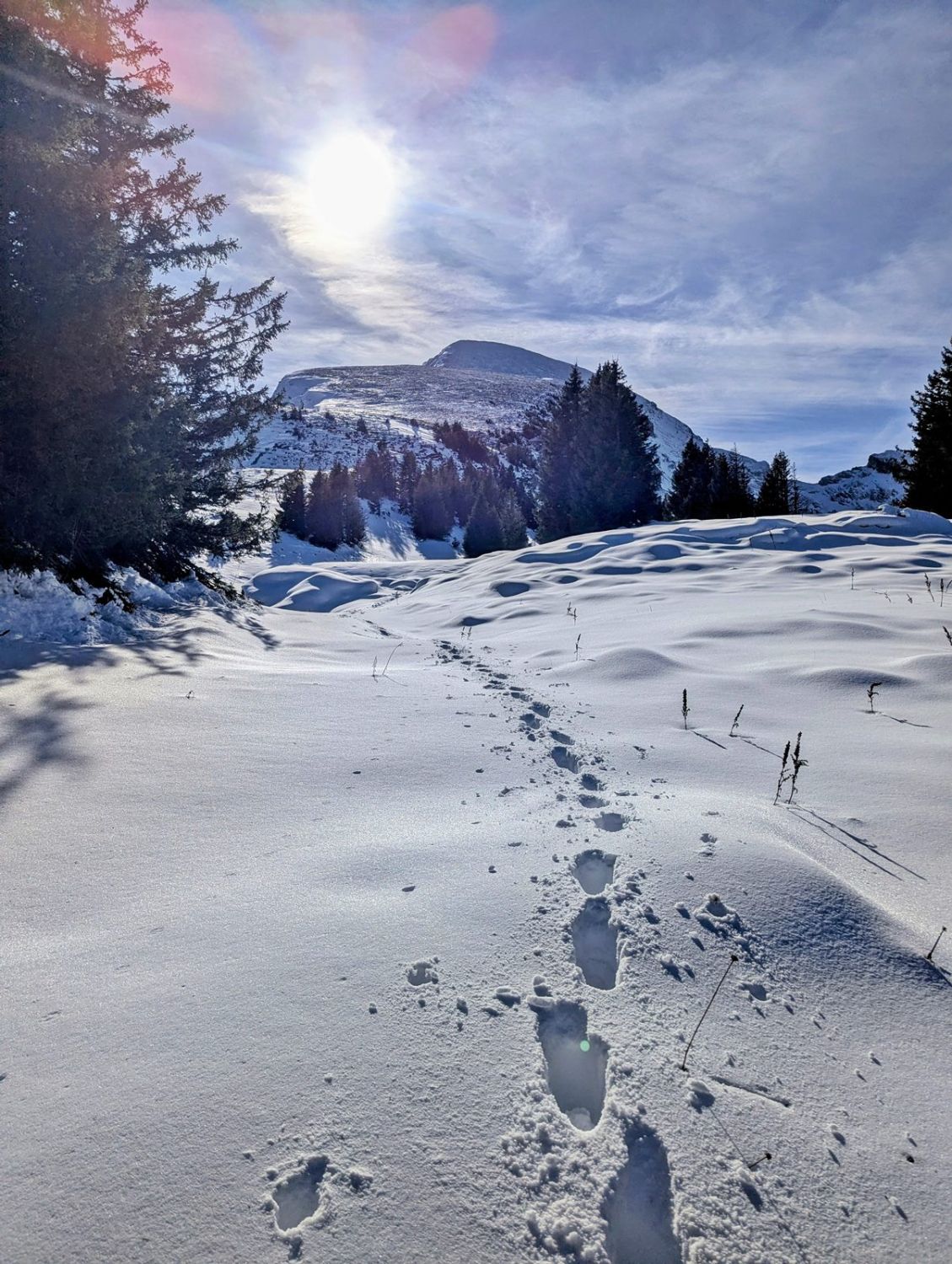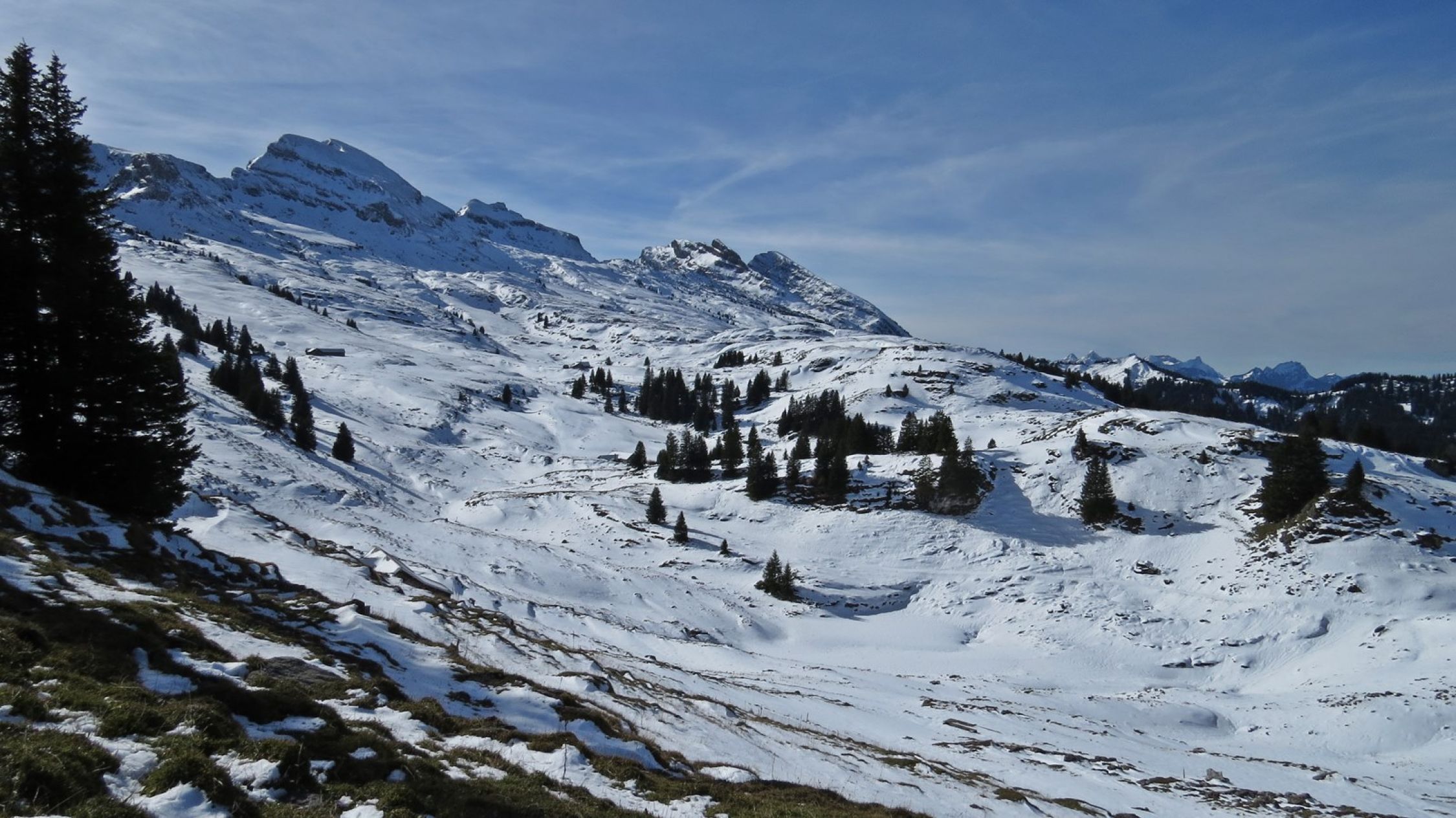 Die warmen Tage dürften der Schneedecke etwas zugesetzt haben, die grundsätzlich nordseitige Exposition wird es aber in Grenzen gehalten haben. Jetzt kommt es auf die Schneefallgrenze an. Wird sicher eher mehr werden. Dann mit Schneeschuhen lohnend.