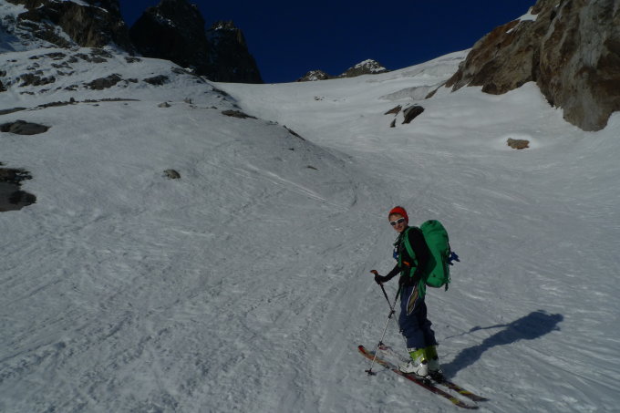 Sehr wenig Schnee aber das wissen wir ja alle. Immer noch etwas Pulver bei der Abfahrt gefunden. Eingang ins Hohbergtal sehr wenig Schnee Couli fast nicht begehbar. Die Östliche Flanke geht recht gut zum Steigen zwei Steilstellen etwas mühsam. Bildet aber für den weiteren Schneee leider eine schlechte Unterlage. Aufstieg zum Stösenjoch im Moment sehr heikel waren zu spät daher Umkehr beim Skidepot.