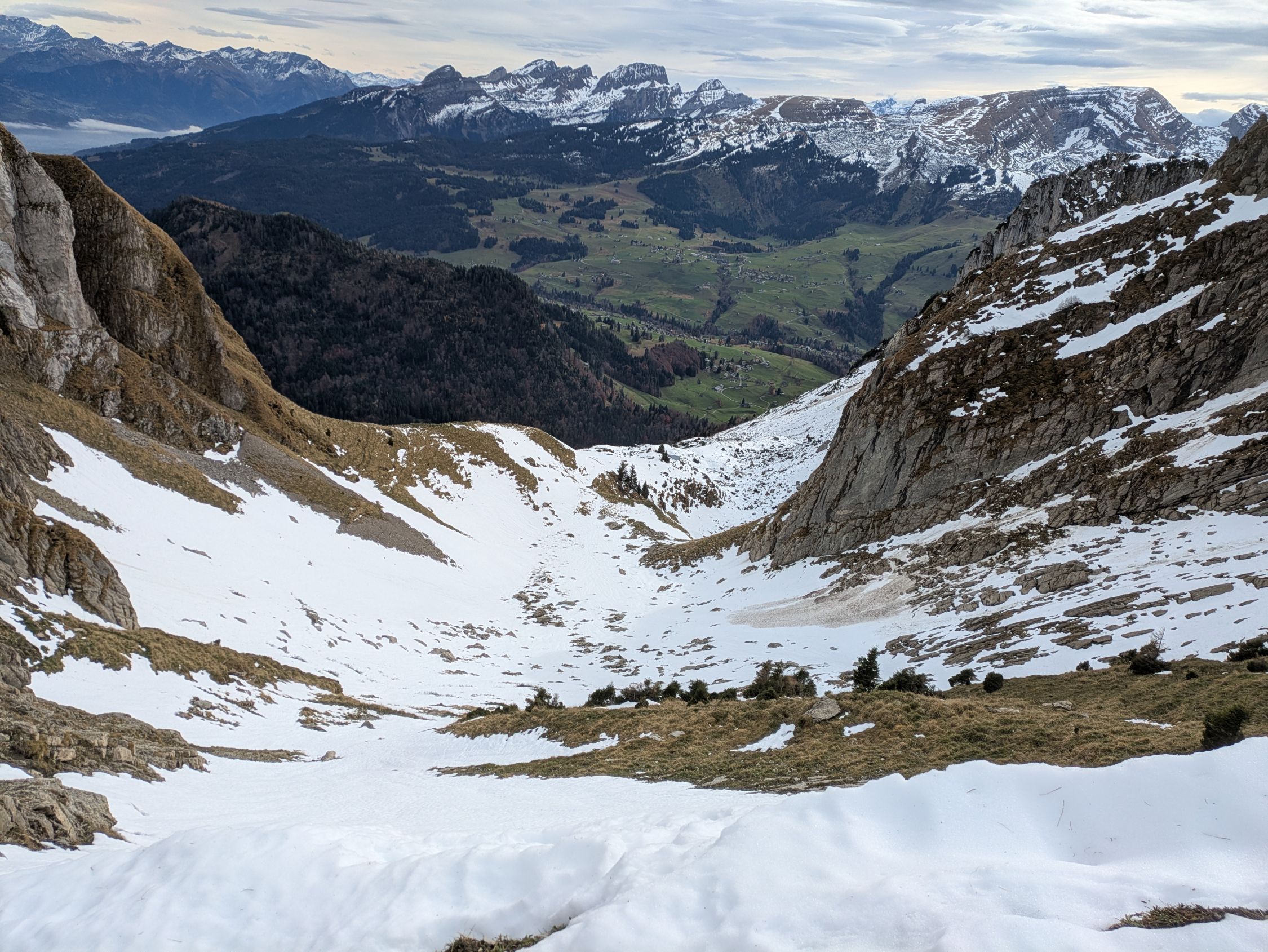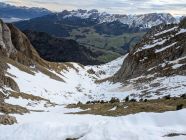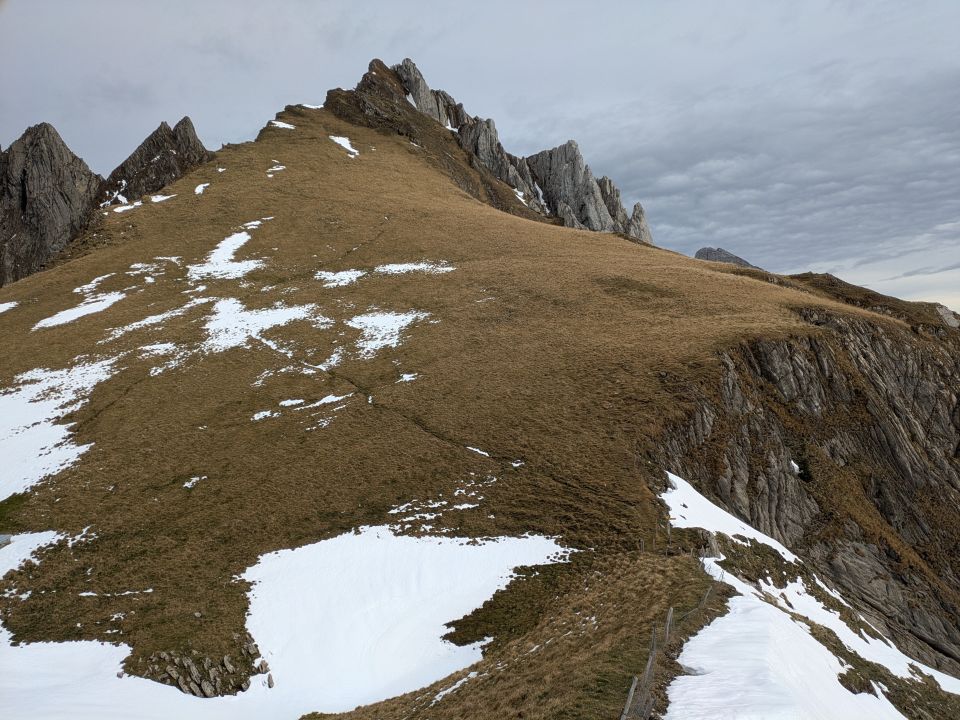 Der Gipfelgrat ist schneefrei, aber von 1450m bis zum Lauchwis recht viel Schnee, ebenso beim weiteren Weg Richtung Tierwis