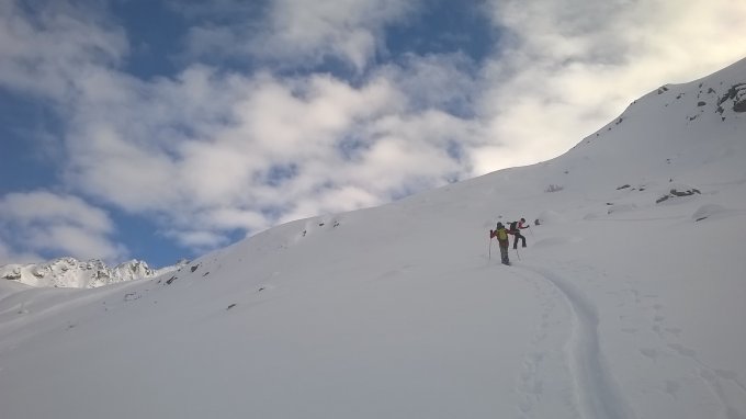 15cm Neuschnee, keine Unterlage. Bei der Abfahrt leider öfters Felskontakt.