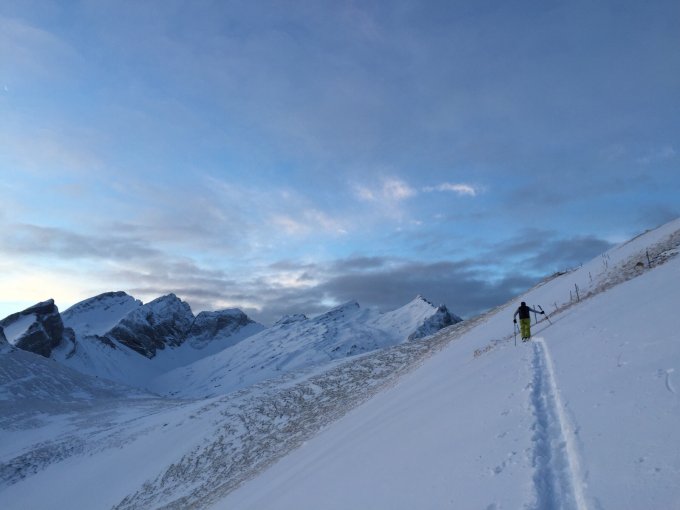 Mit Auto bis auf 1000 m bis Fahrverbot gefahren. Zu Beginn 5 cm Schnee ohne Unterlage. Ab Gamperney bis Gipfel 20-30 cm Pulver ohne Unterlage. Oberhalb 1400 m ok, darunter schlichtweg zu wenig Schnee.