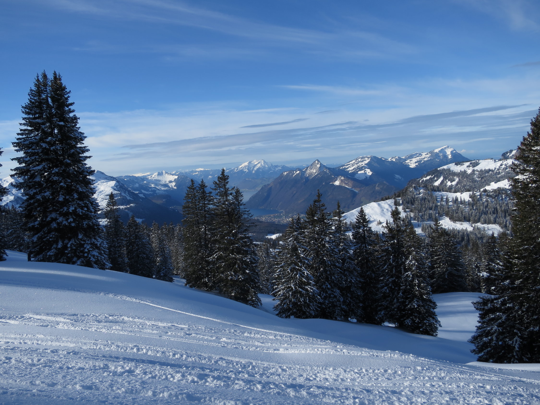 Für Aufstieg super; schattenverwöhnte Wiesenhänge oberhalb ca 1400m Pulvertraum;