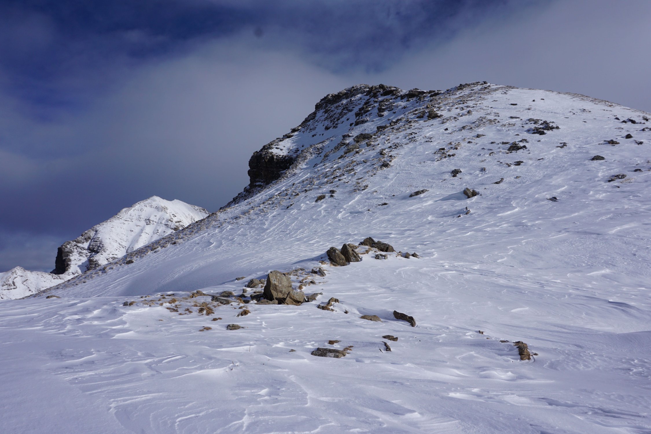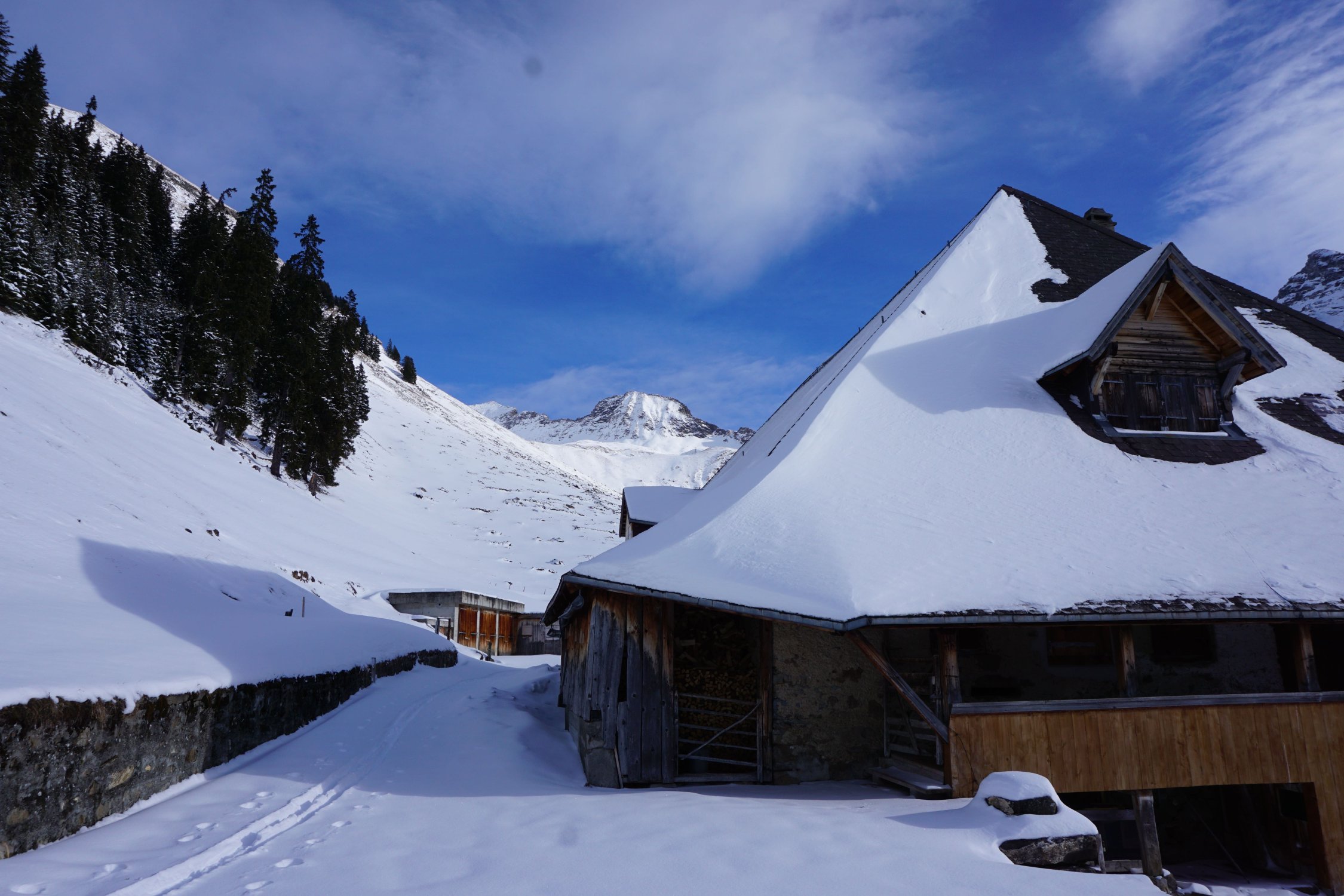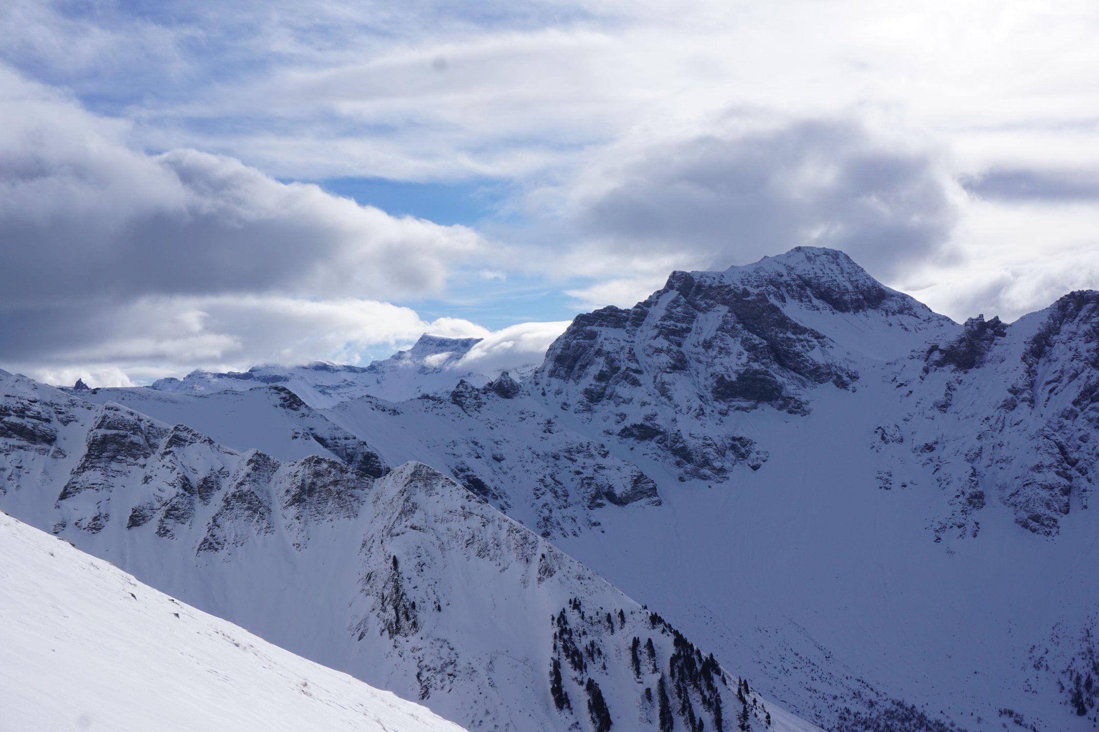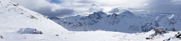 Erstaunlich, dass in den Rinnen und Mulden W genügende Schnee liegt, dass fast ohne Steinkontakt eine Abfahrt möglich ist. Pulverschnee auf einer zum Teil sehr kleinen Altschneeunterlage. Zwischen Mittelberg und Hütte 1825 der Alpstrasse folgen.