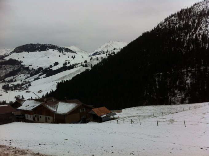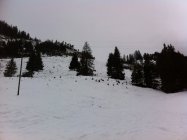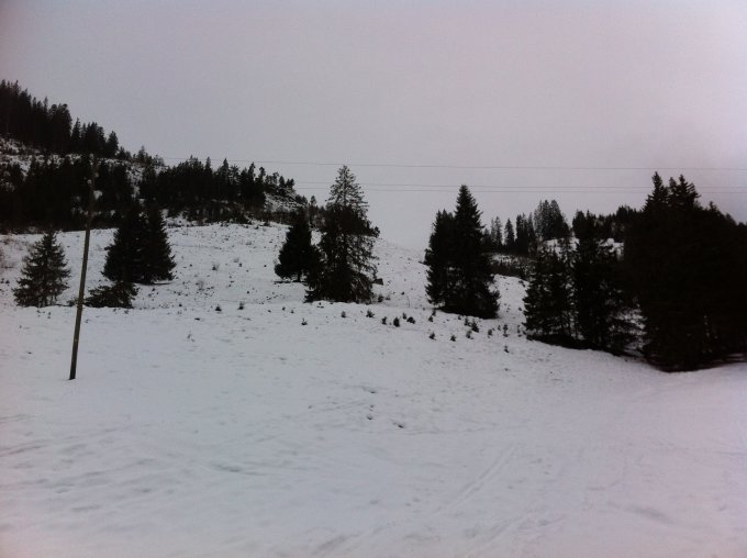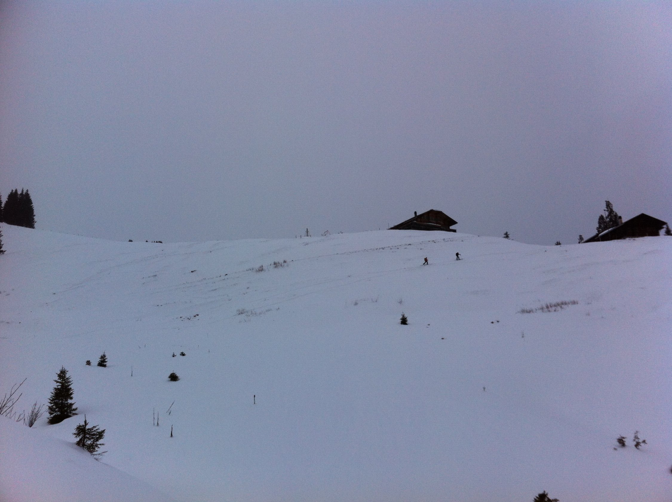 Unterhalb Hüttli 1437m kannst du noch gut auf der Strasse abfahren - heute fast bester Teil zum Skifahren....