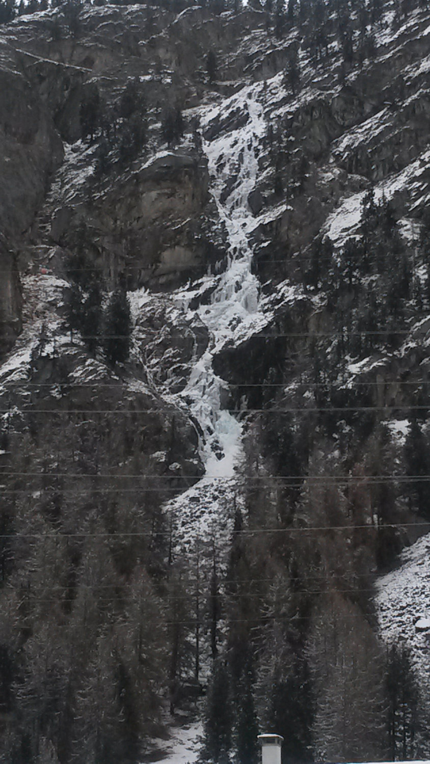 Die Verhältnisse sehen sehr schlecht aus von der Strasse, wir sind selber nicht im Eisfall geklettert.