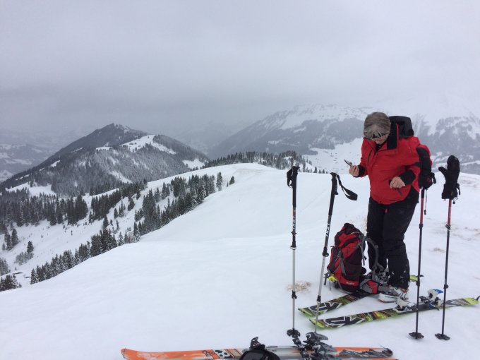Einfach genial: Das warme und nasse Wetter von letzter Woche haben die Unterlage gut setzen lassen und der Pulverschnee von vorgestern mit über 40cm Neuschnee hat sich prächtig verbunden mit der darunterliegenden Schicht. Die kalten Temperaturen der letzten zwei Tage (heute morgen gab es -10 Grad in Gsteig) haben Traumverhältnisse geschaffen, wie man sie selten findet. Die Lawinengefahr ist auf dieser Tour mehrheitlich im Wald oder mässig steilem Gelände (unter 30 Grad) kein grosses Thema und müsste in diesem Gebiet eher an der unteren Grenze von erheblich liegen.
